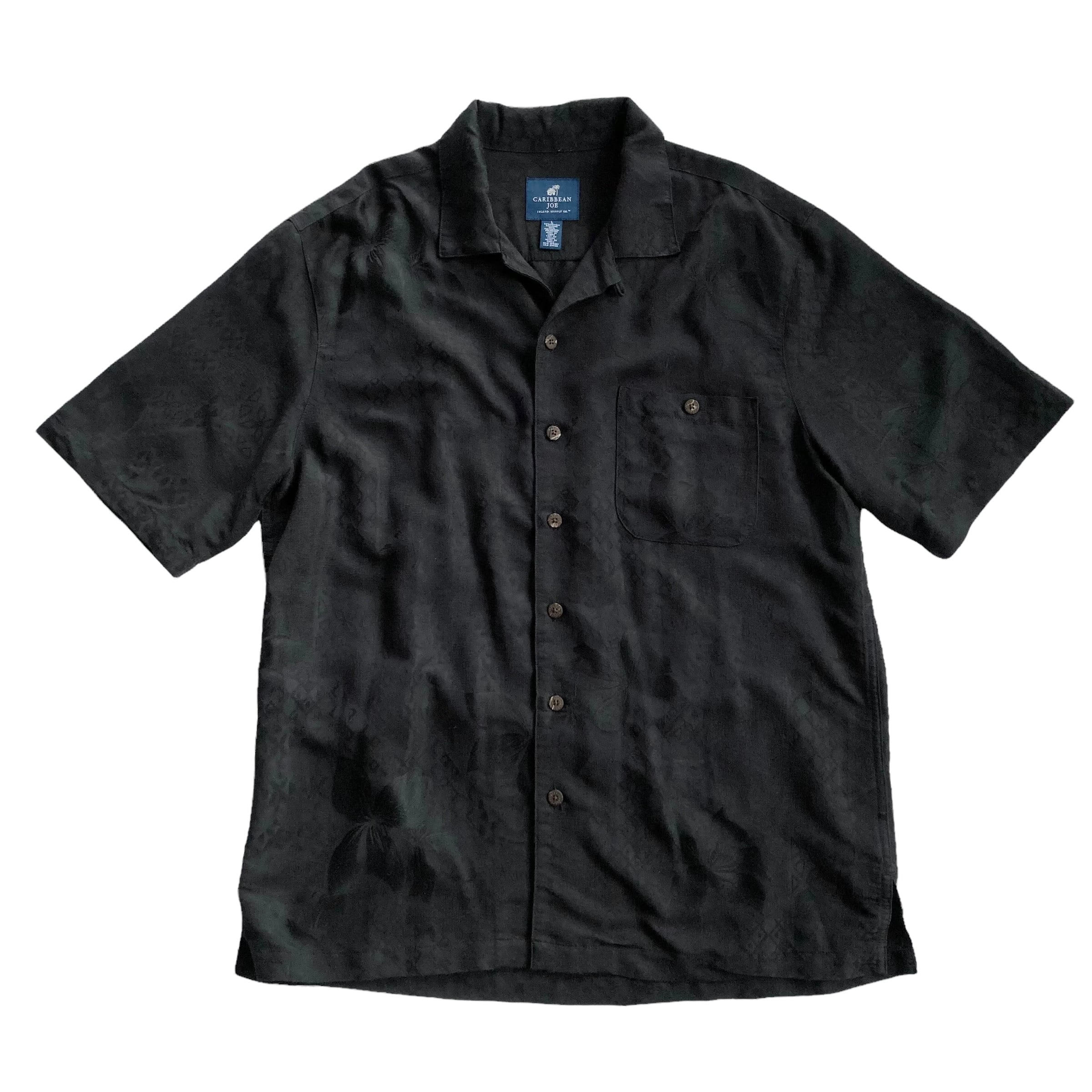 CARIBBEAN JOE 織り柄 オープンカラーレーヨンアロハシャツ ブラック SIZE L【0601A35】【ネコポス発送可能】