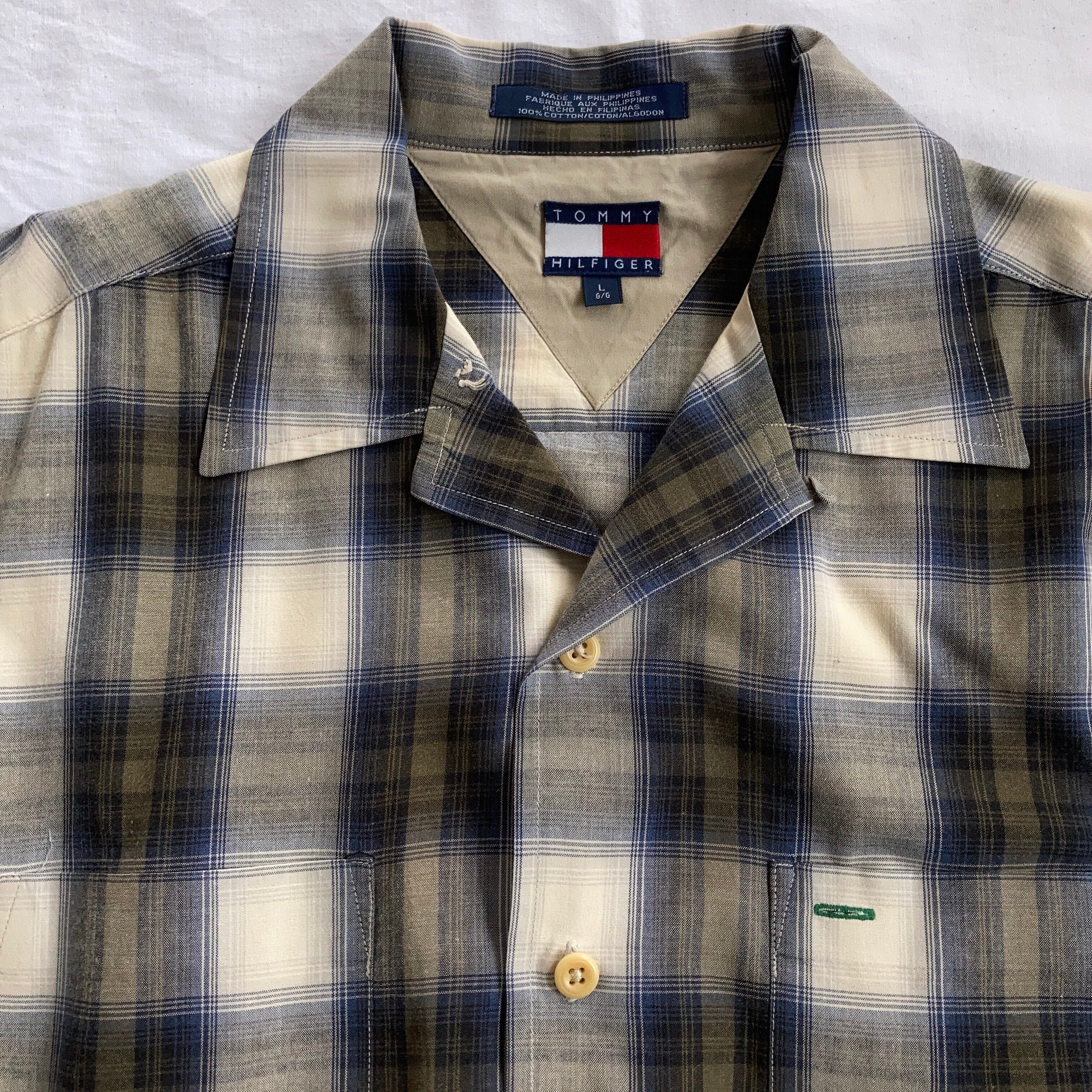 TOMMY HILFIGER オンブレチェック オープンカラーL/Sシャツ SIZE L【0601A39】【ネコポス発送可能】