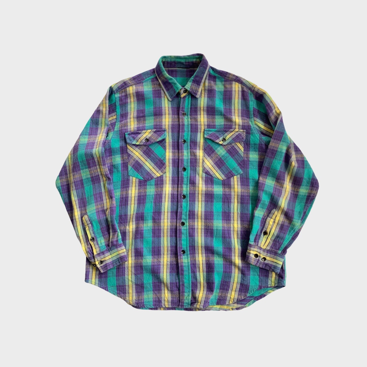 old ヘビーフランネルシャツ パープル×グリーン×イエロー【0601A75】
