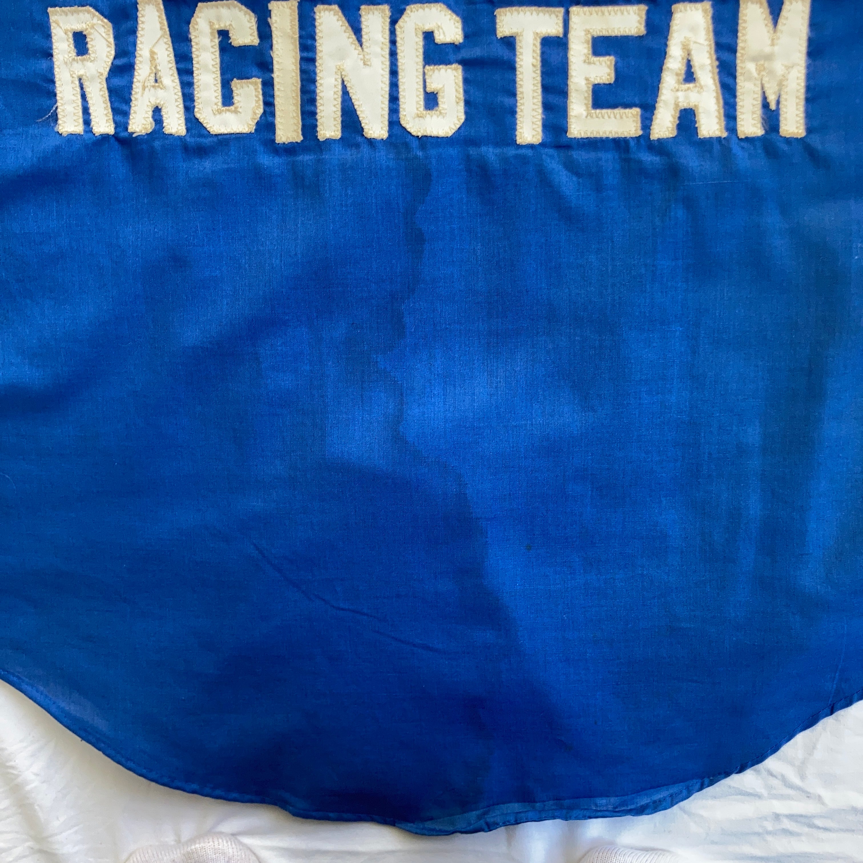 レーシングチームのバックワッペンが付いたビンテージワークシャツ 。