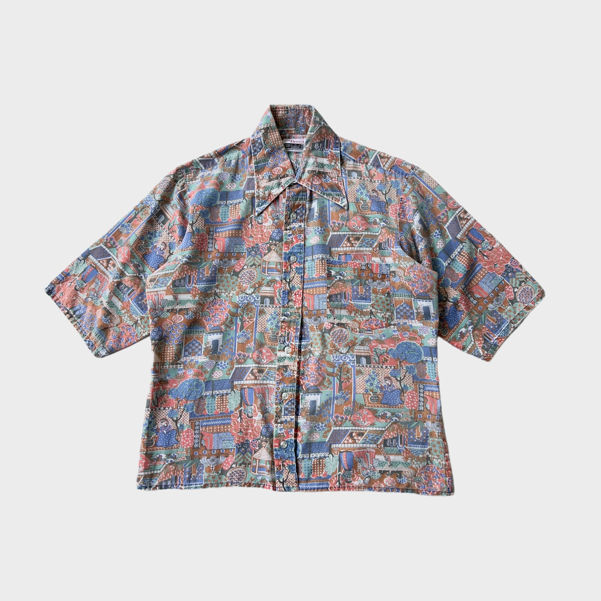 1980's Campus 総柄ボックスシャツ SIZE M【0701A40】【ネコポス発送可】