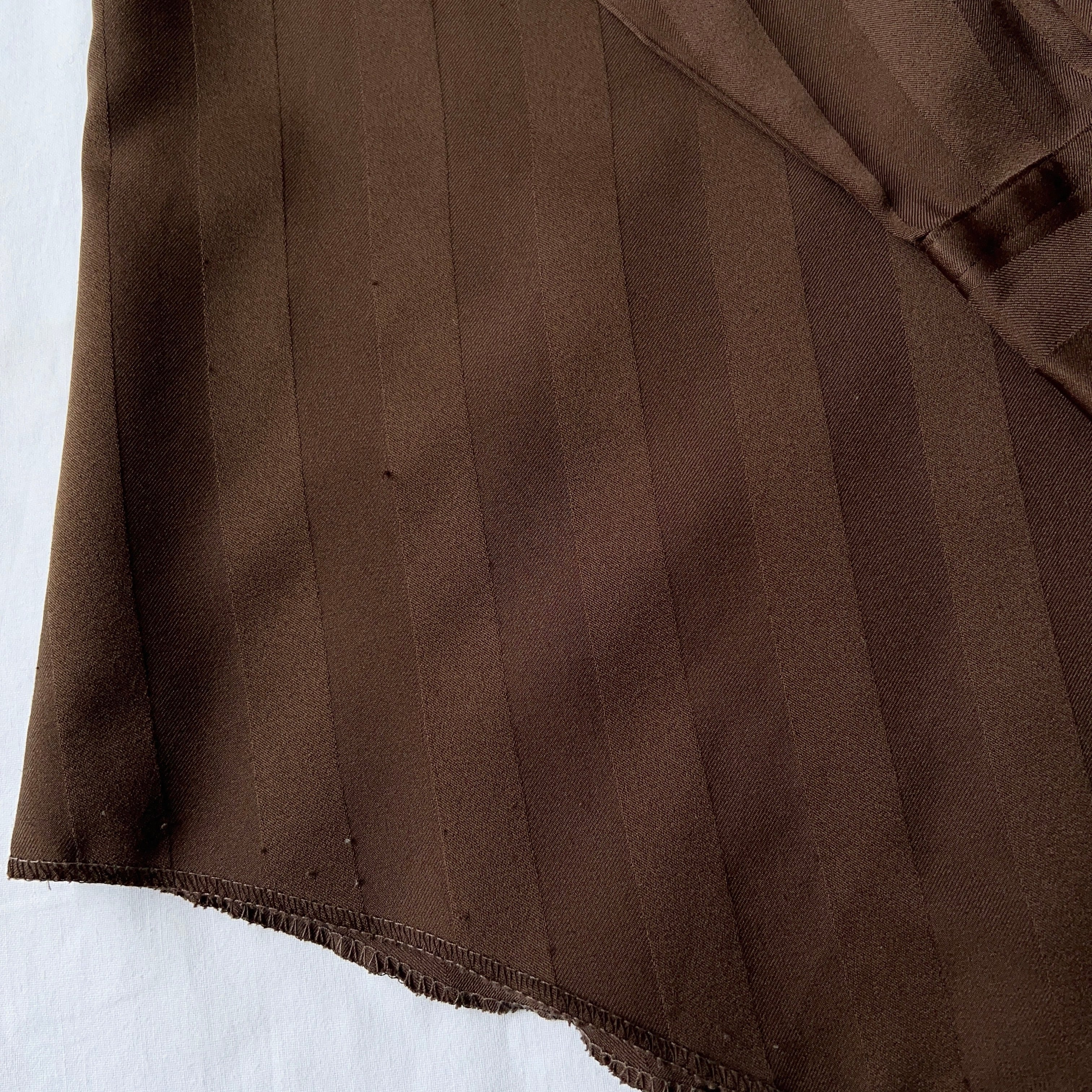 カラーは渋いブラウン。うっすらとストライプ柄が入っているのがポイント。