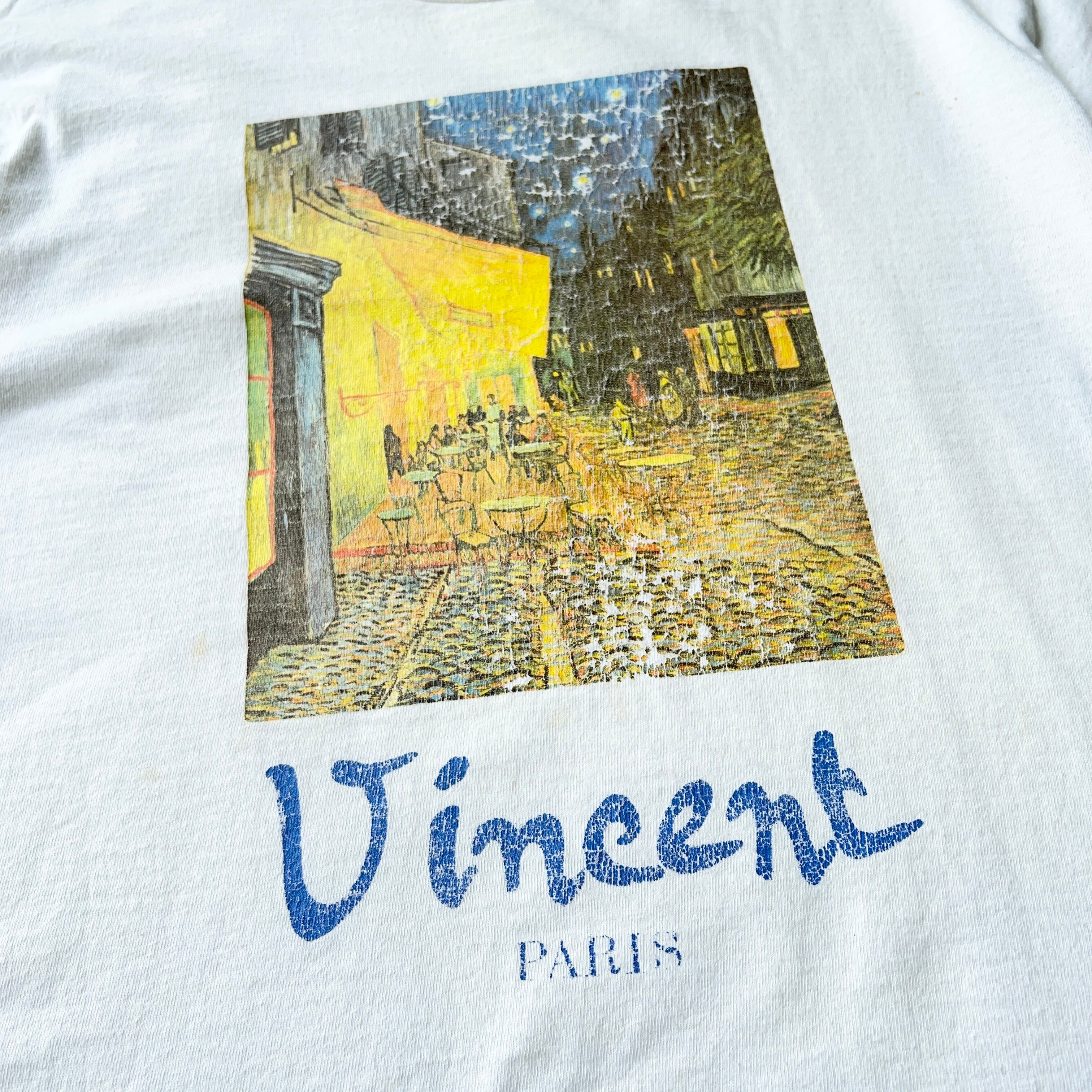 ゴッホの作品の中でも知名度が高い"夜のカフェテラス"がプリントされたビンテージアートTシャツ。