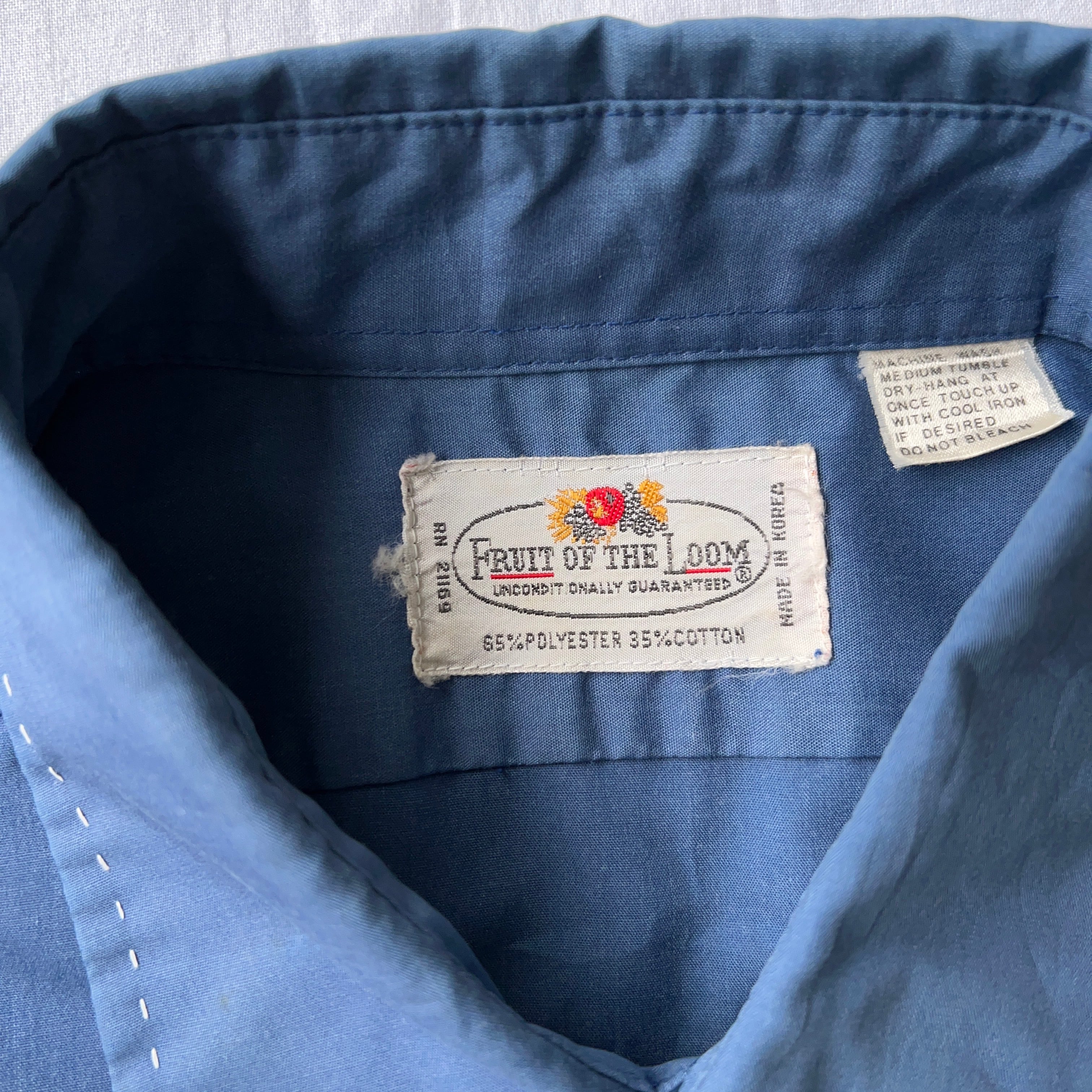 70's~80's FRUIT OF THE LOOM アウトステッチ ポリコットンシャツ ネイビー【0701A117】【ネコポス発送可】