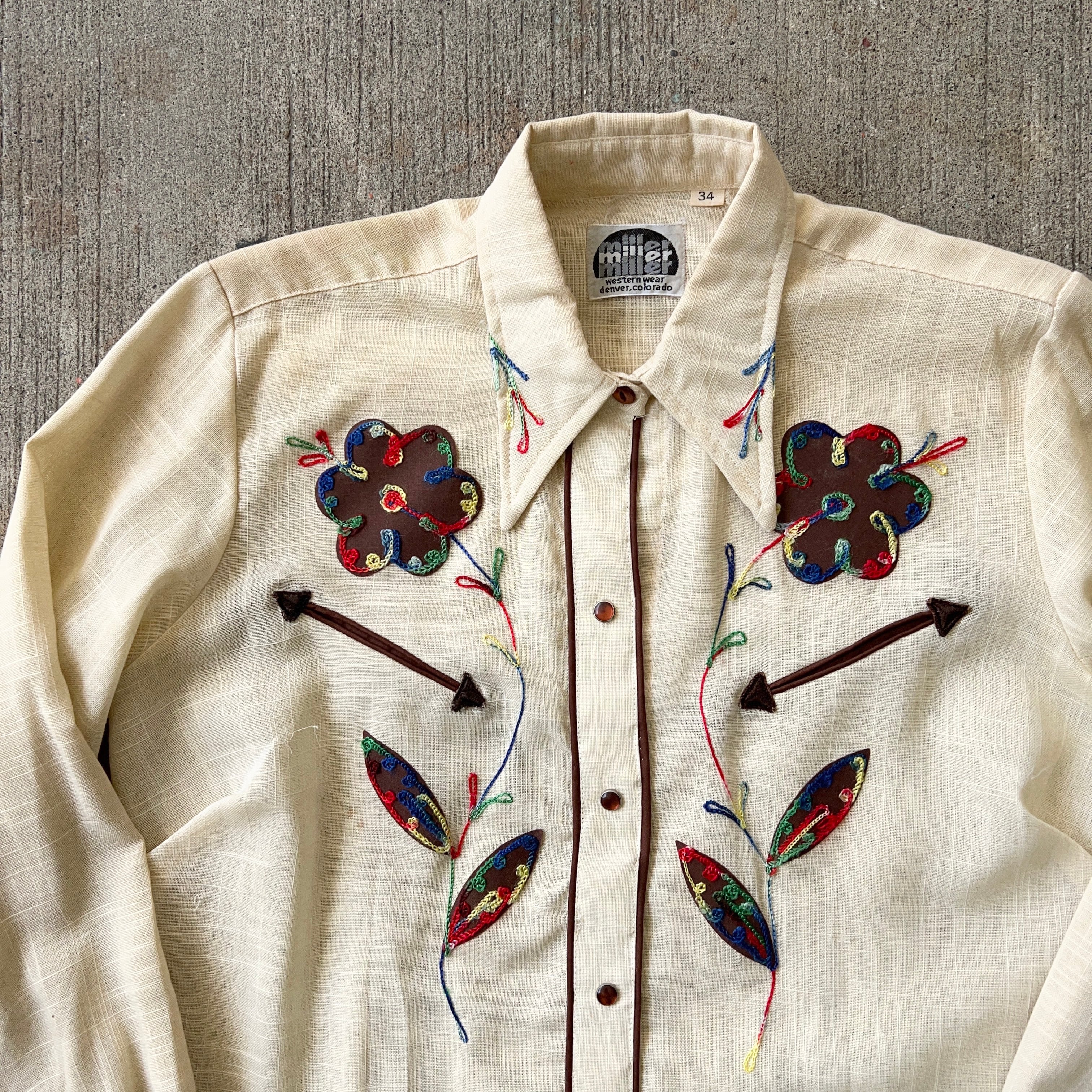 70's Miller 刺繍ウエスタンシャツ SIZE 34【0701A180】【ネコポス発送可】