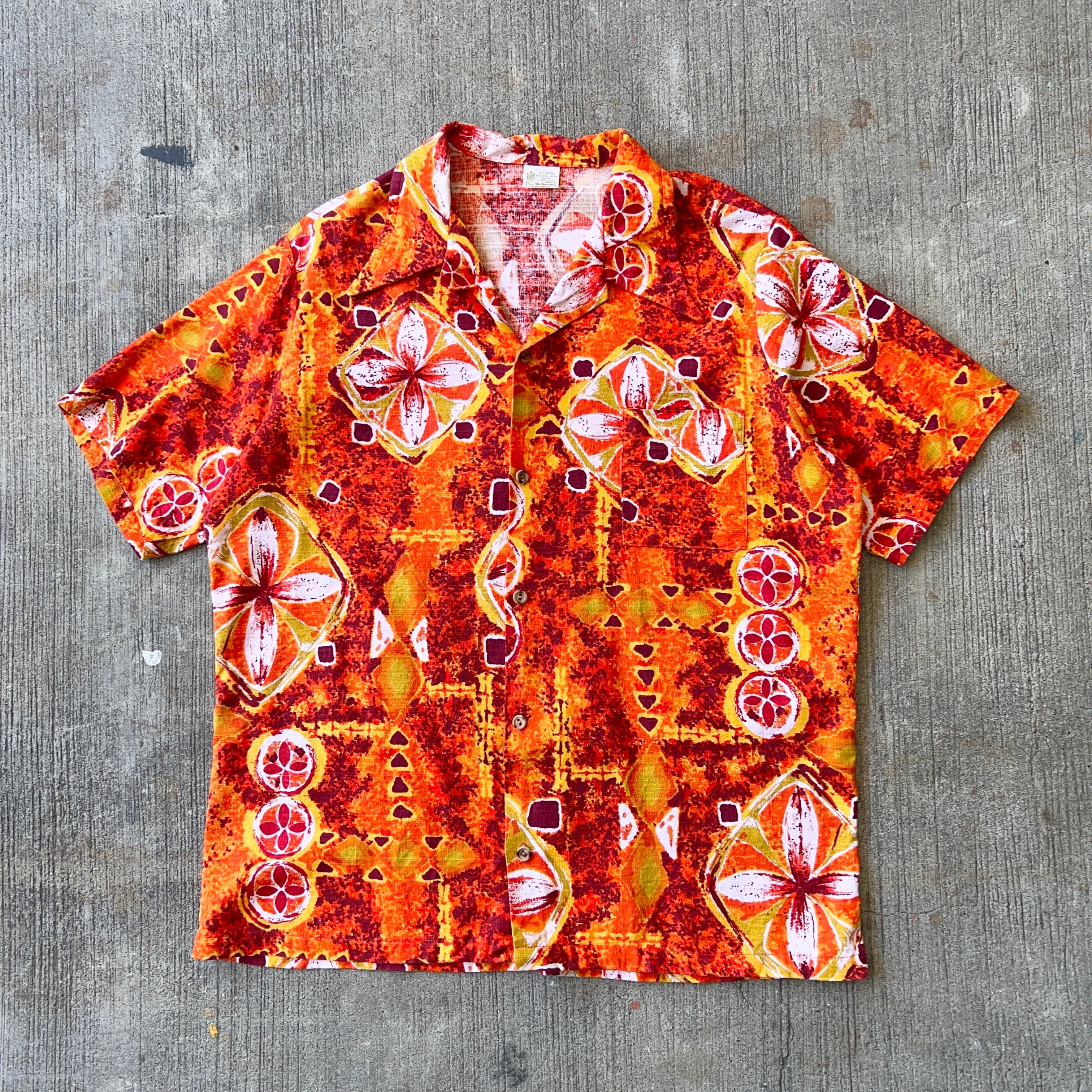 アメリカ3大ストアブランドSEARS社のビンテージアロハシャツ。派手で攻撃的な配色が夏らしくて良い感じ。