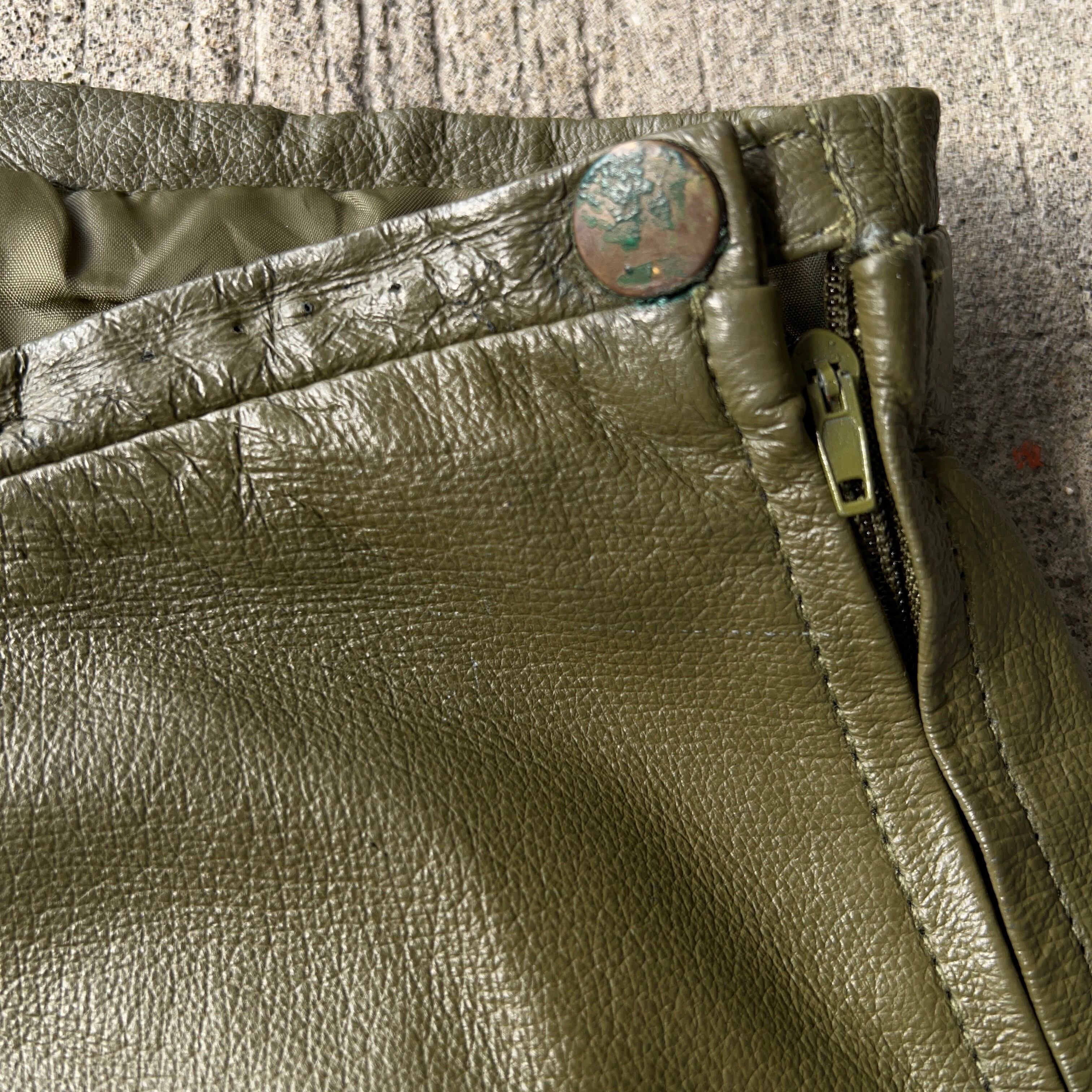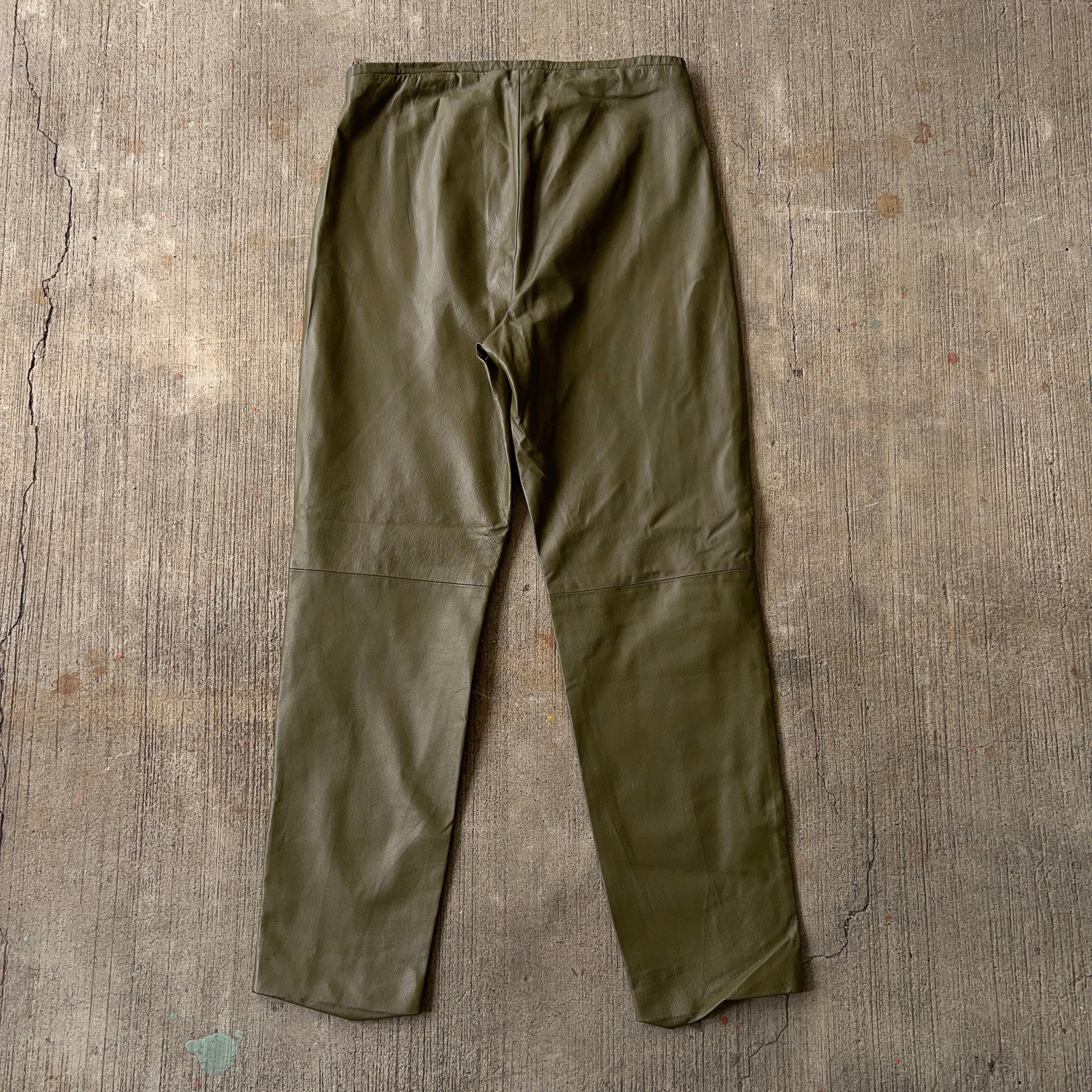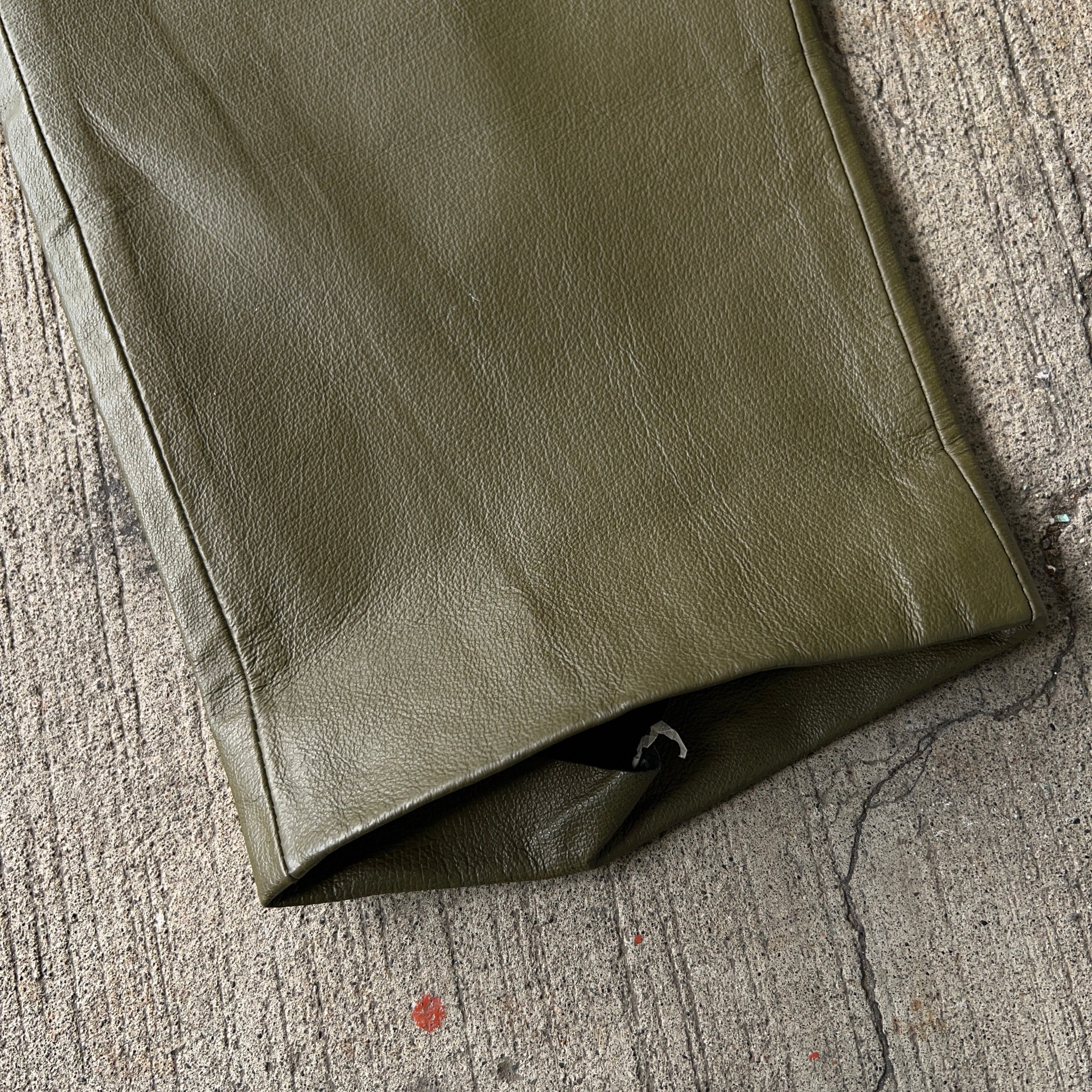テーパード レザーパンツ オリーブグリーン W33.5【0905A20】
