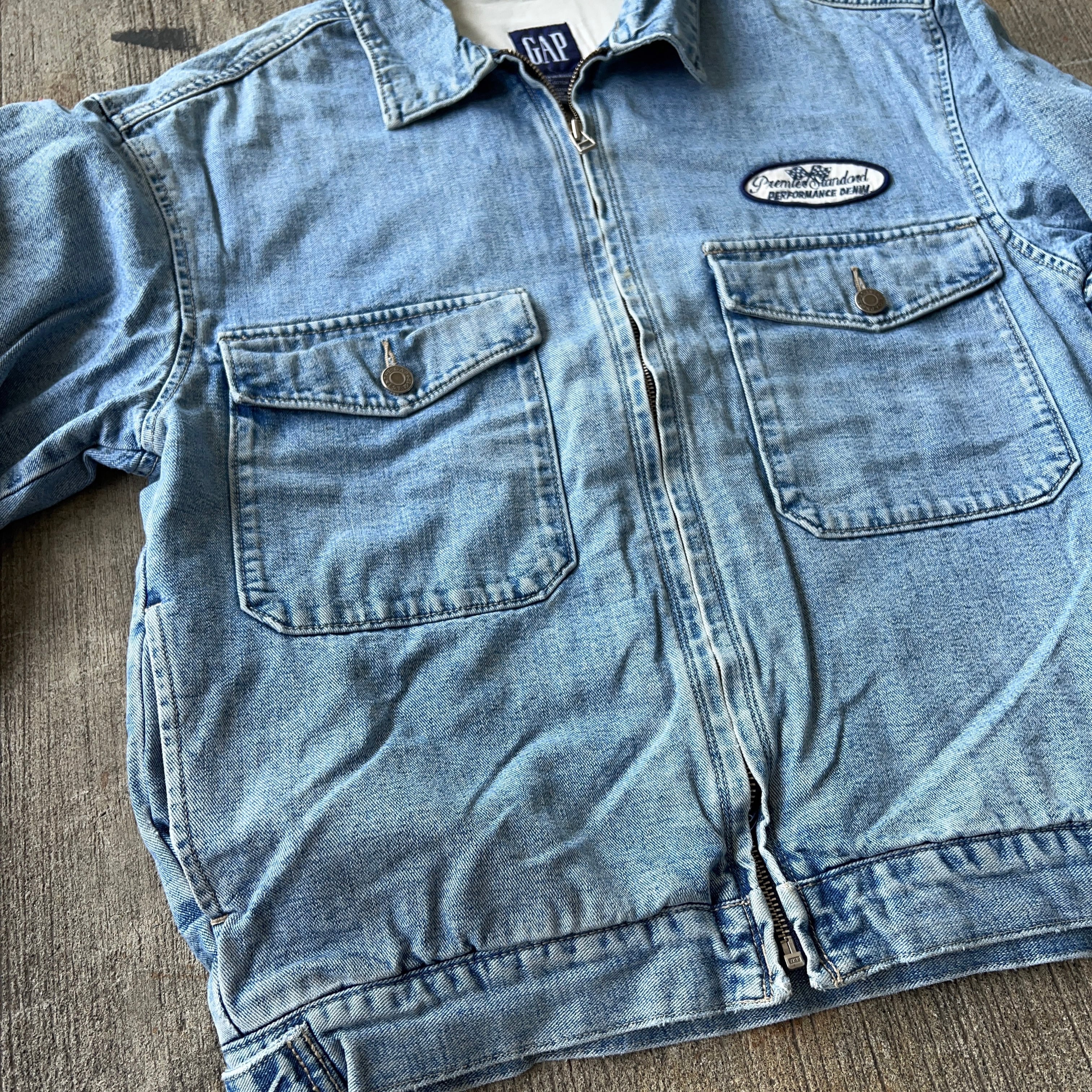 オールドGAPの刺繍タグが付いたレーシングデニムジャケット。