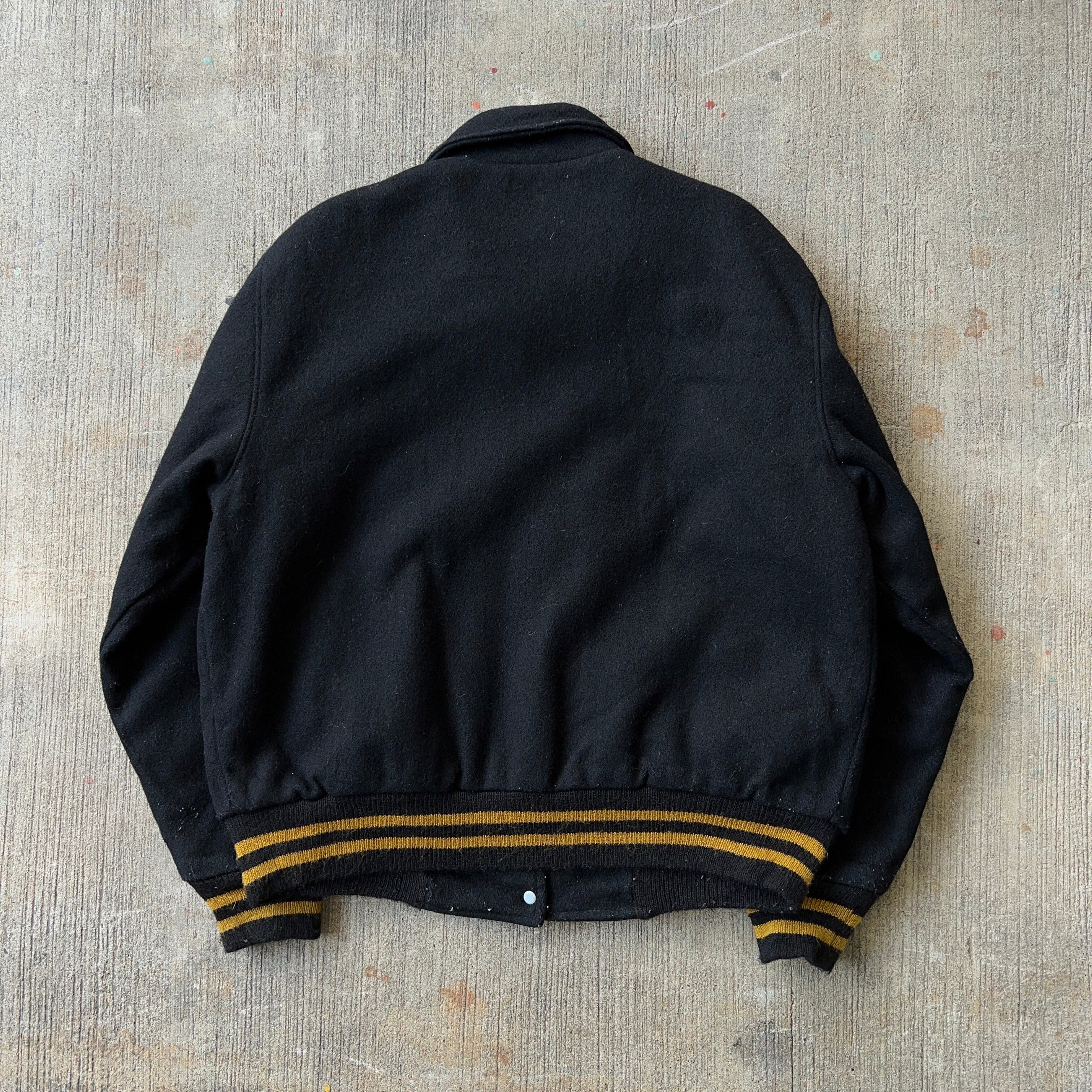 ~90's TROPHY JACKETS メルトンスタジャン ブラック SIZE XL【0915A15】【送料無料】
