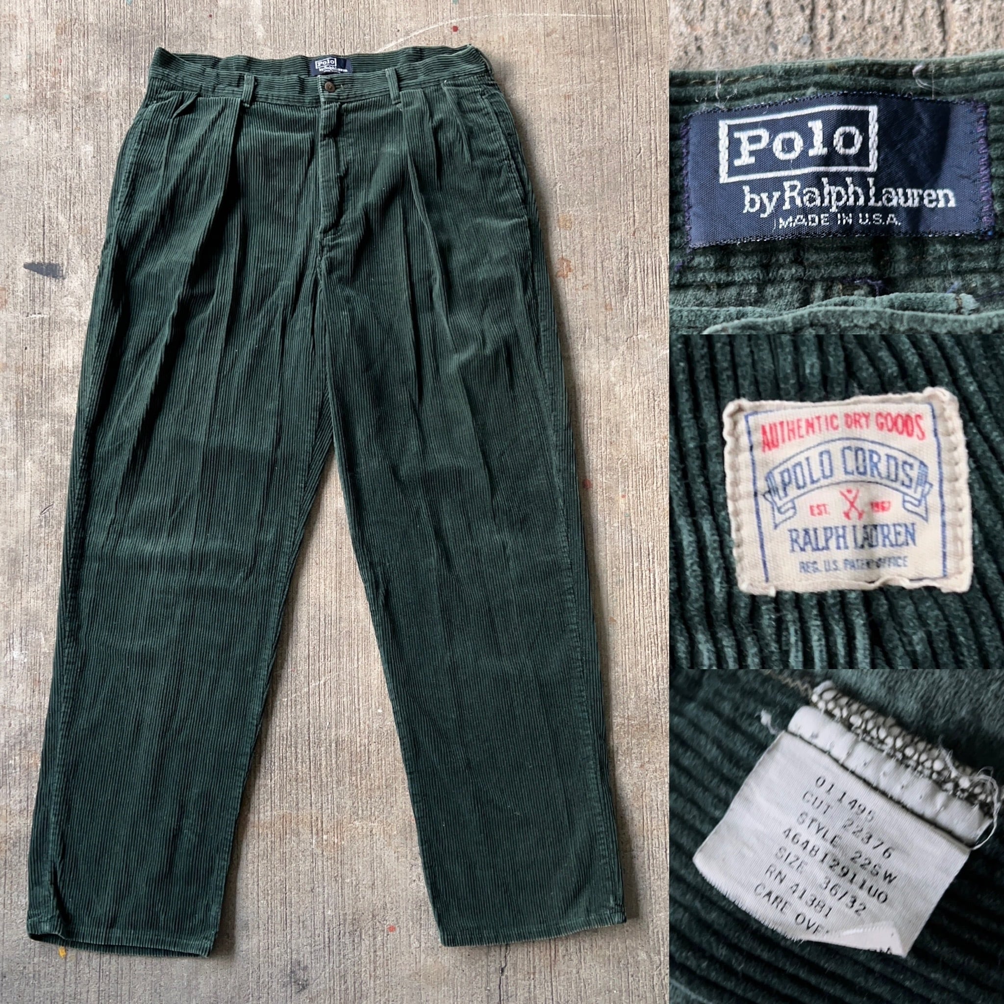 90's POLO by Ralph Lauren インタック太畝コーデュロイパンツ グリーン USA製 SIZE 36【0927A15】