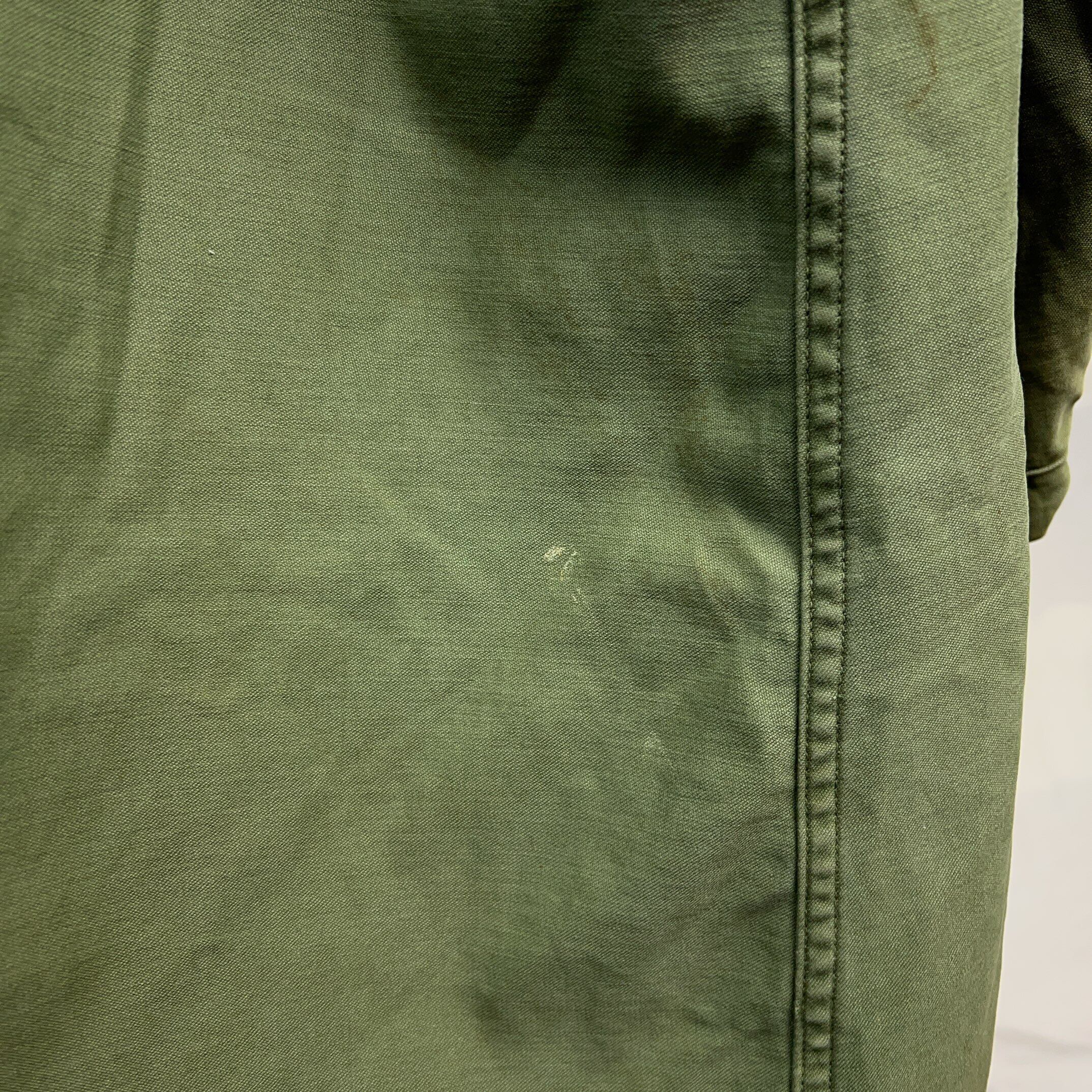 フィールドジャケットの上からでも着られるようにゆとりのあるシルエットで作られたオーバーコートでデカくドサっと羽織るのがカッコいい着方となります。およそ60年ほど経過していることもありビンテージらしい風合いも出ています。