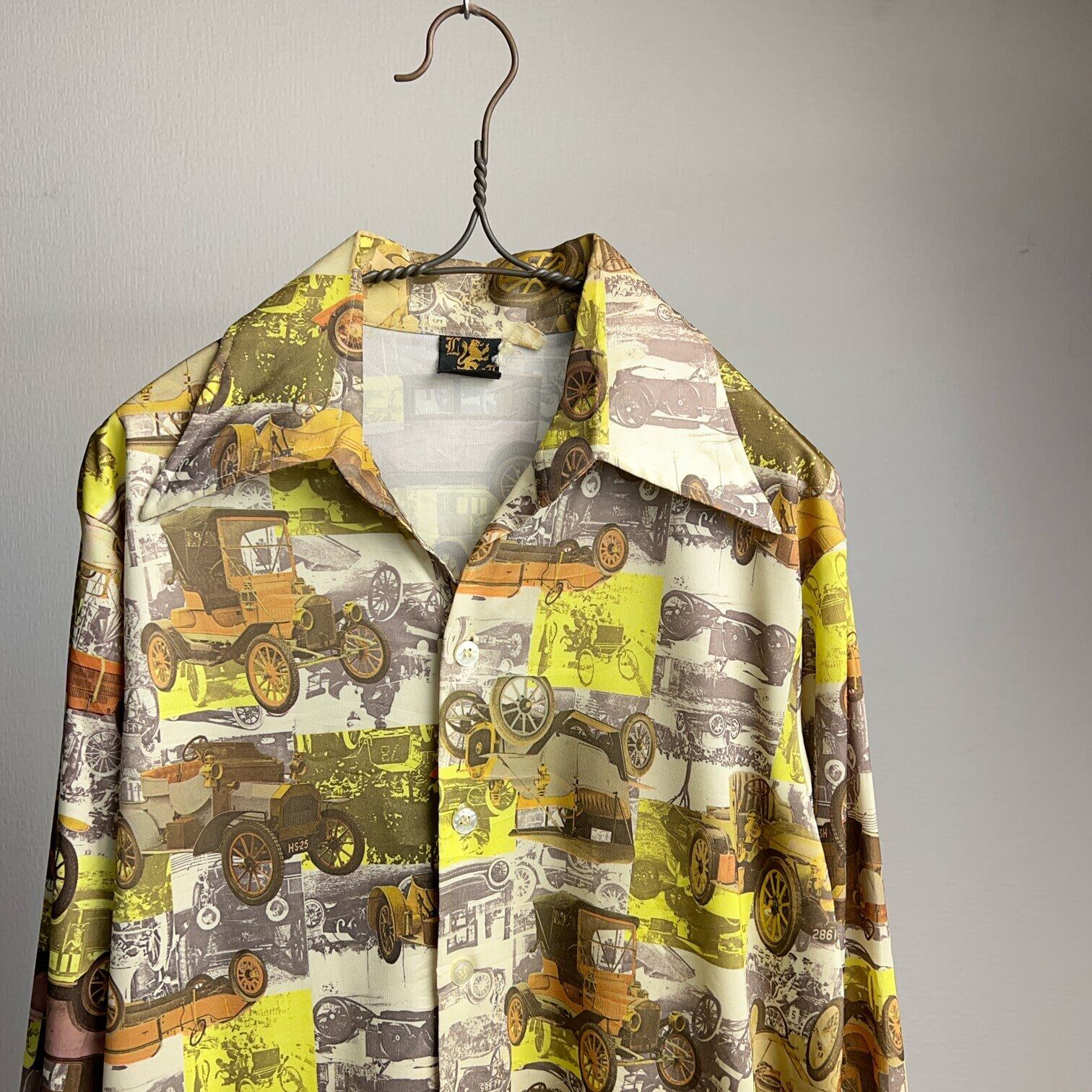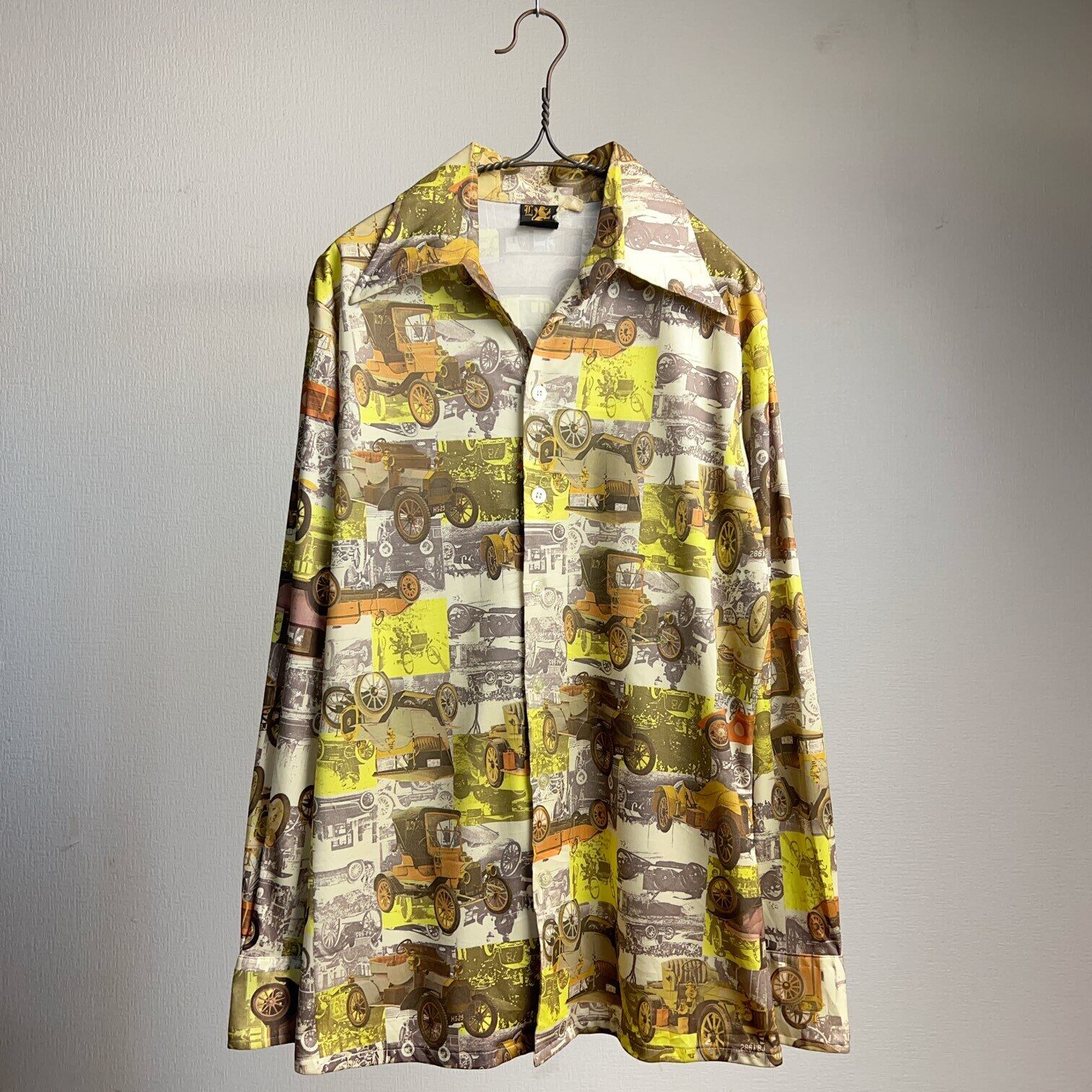 70's~80's Polyester Shirt "CLASSIC CAR" SIZE L【1101A50】【送料無料】