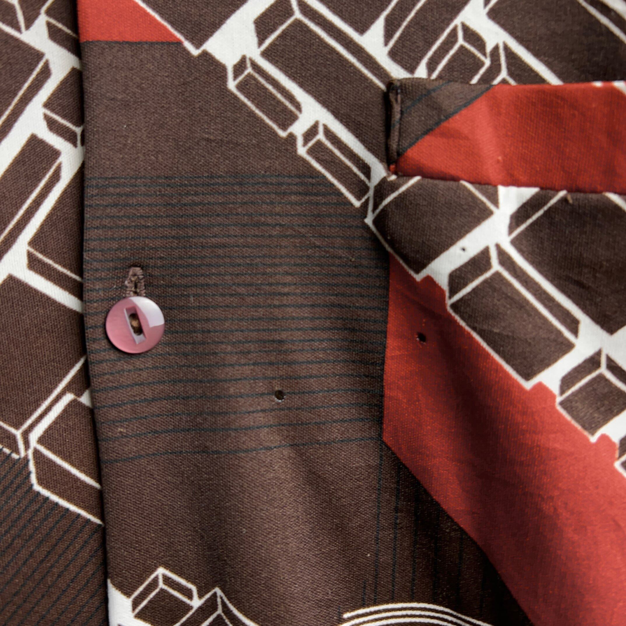 こちらも渋いダークブラウンの総柄パターン。70'sスタイルとの相性が抜群に良いです。
