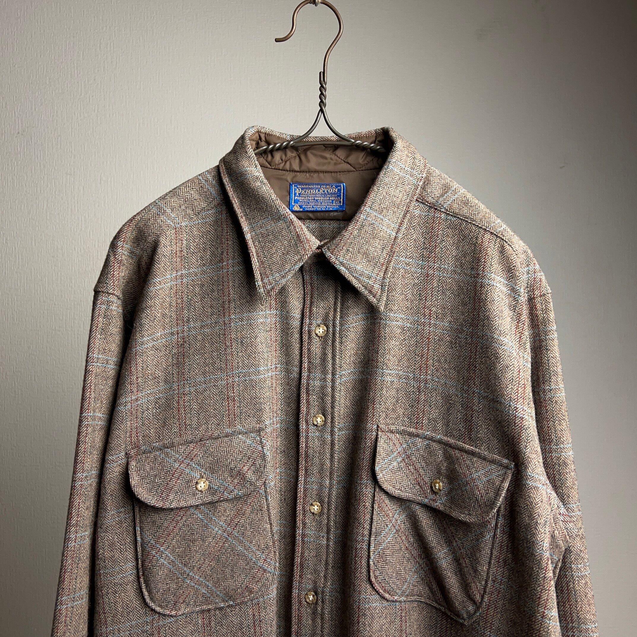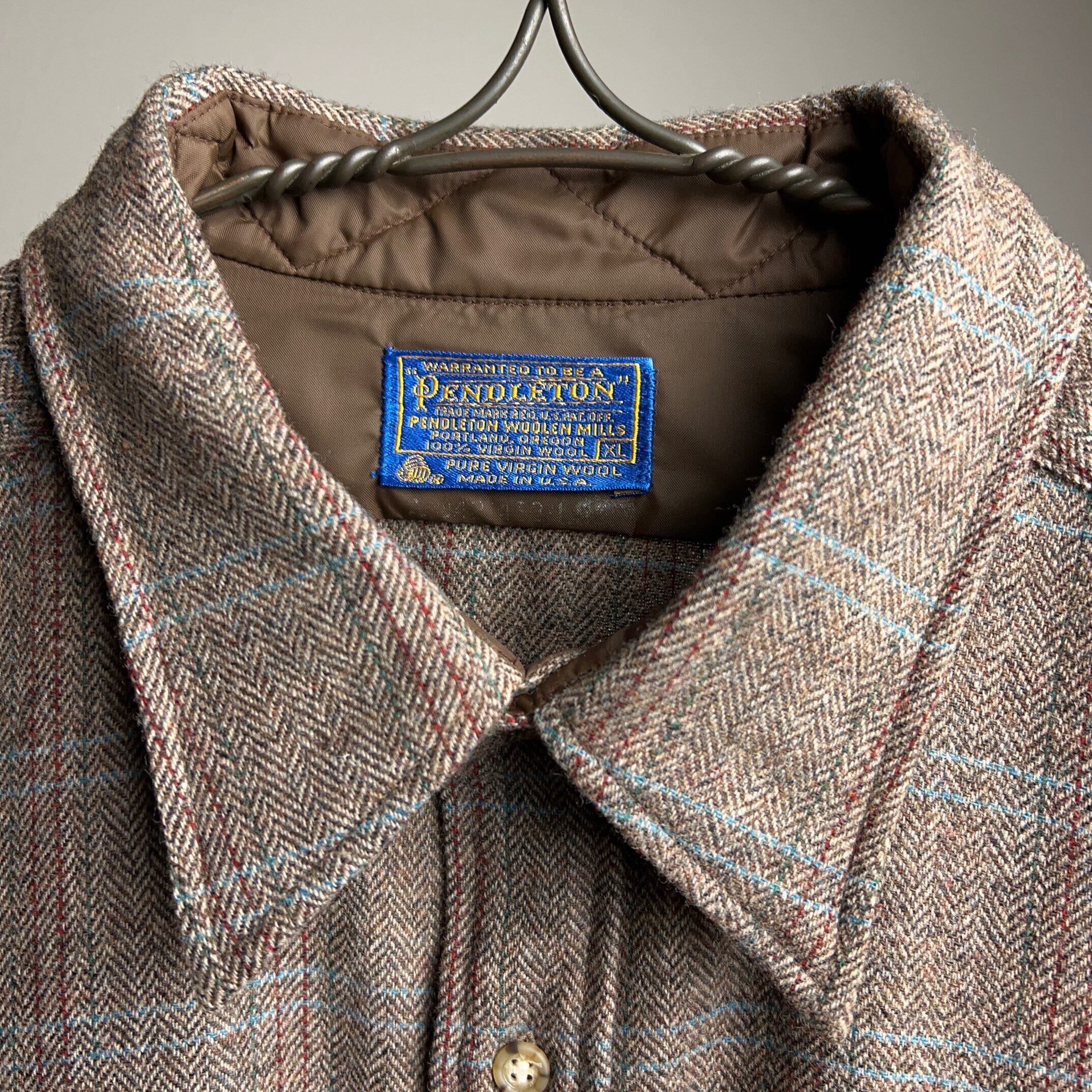 70's~80's PENDLETON WOOL PLAID SHIRT SIZE XL【1101A98】