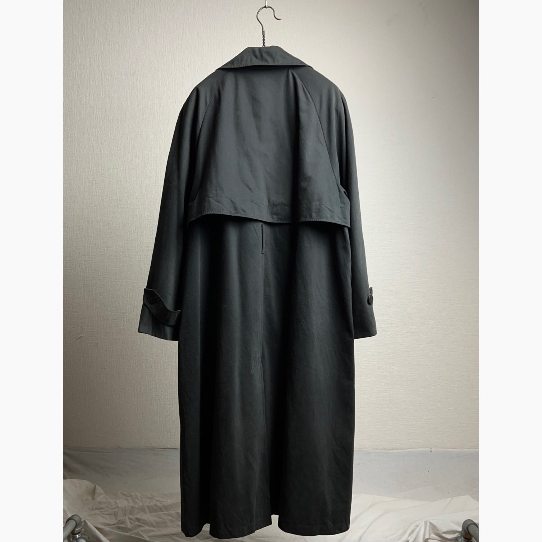 こちらのトレンチコートはてろっとした柔らかいフェイクスエードが使われた墨黒カラー。