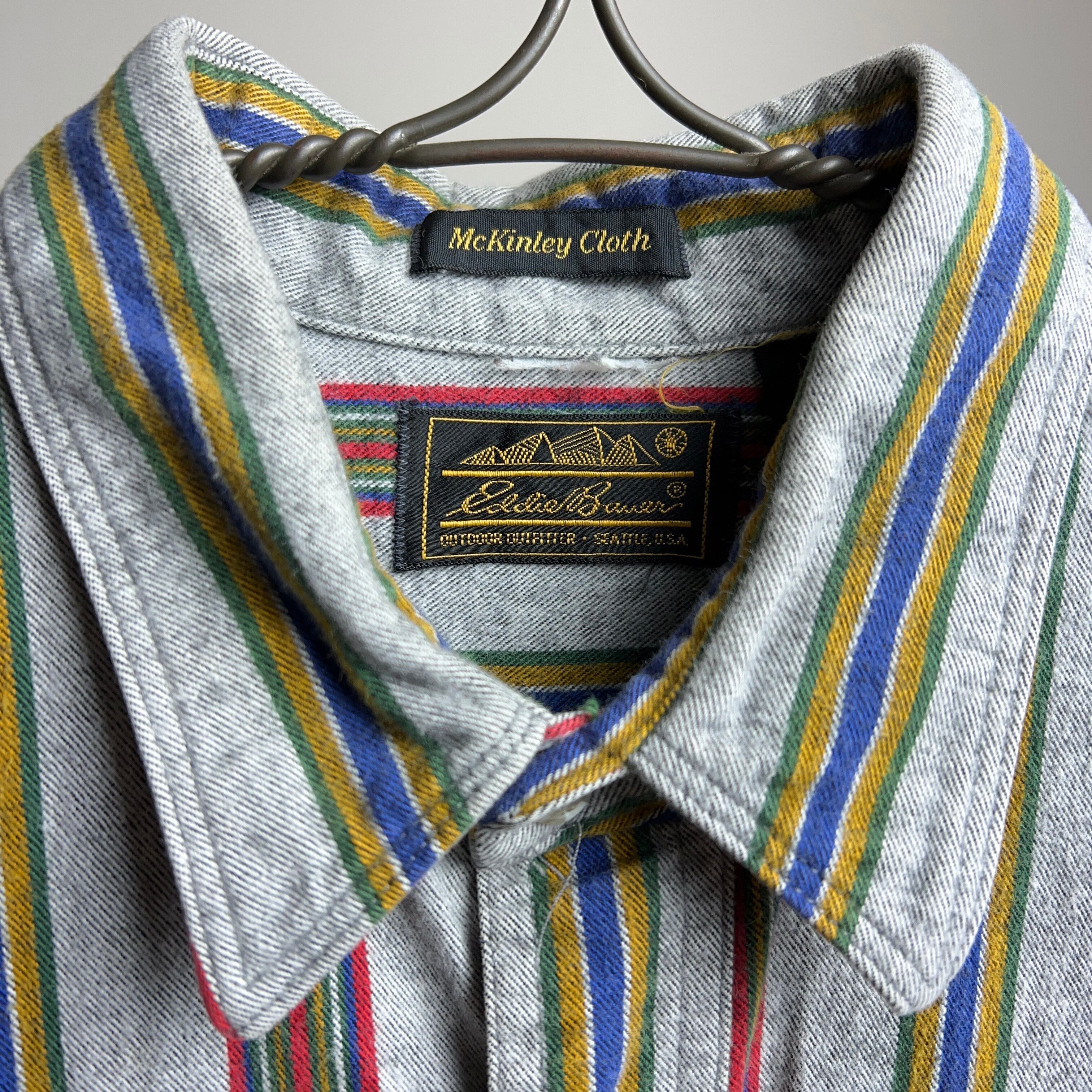 ~90's Eddie Bauer "MULTI-STRIPE" Cotton Shirt 【1202A32】
