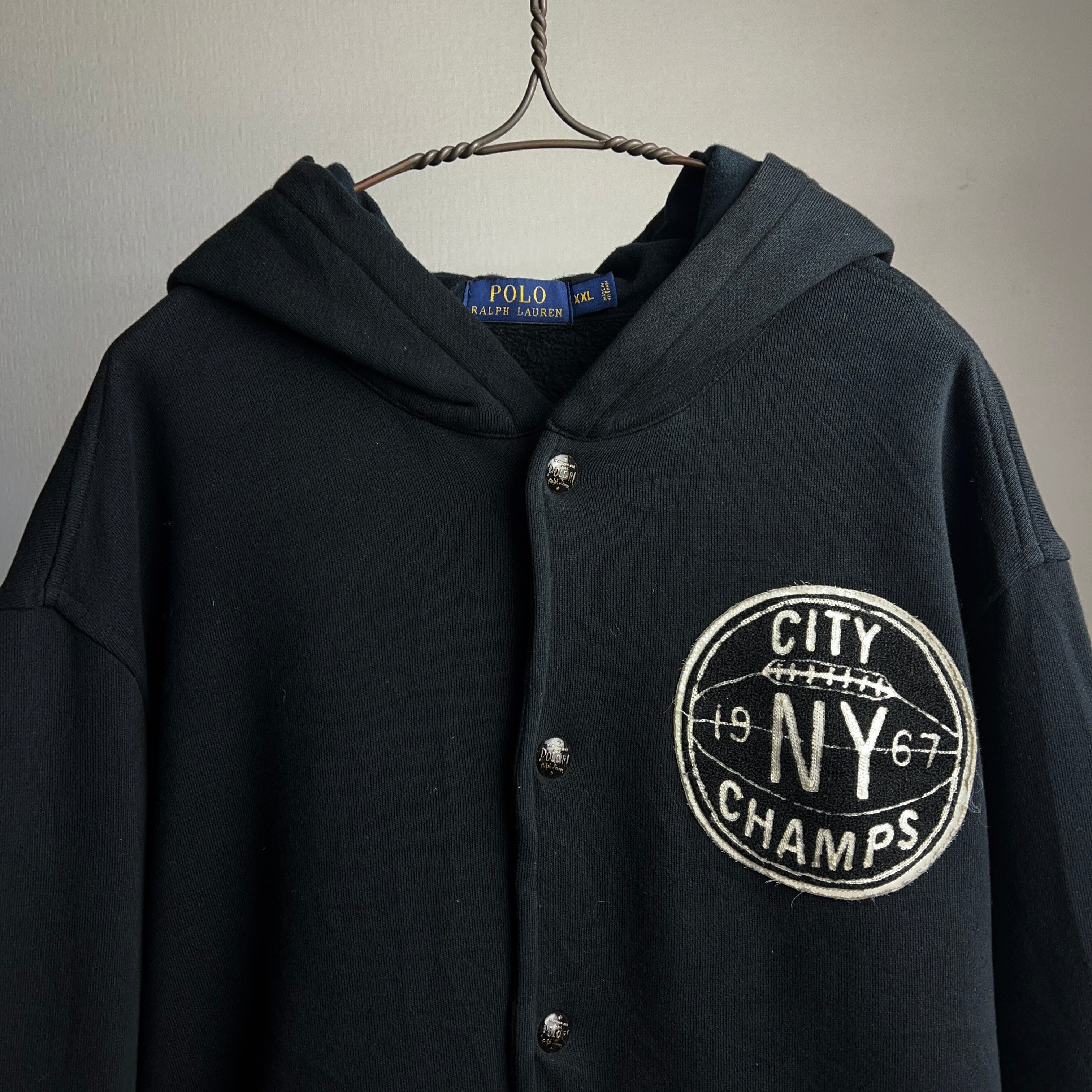 ビンテージのレタードスタジャンのデザインを極厚のスウェットパーカーで再現したラルフローレンらしい1着。