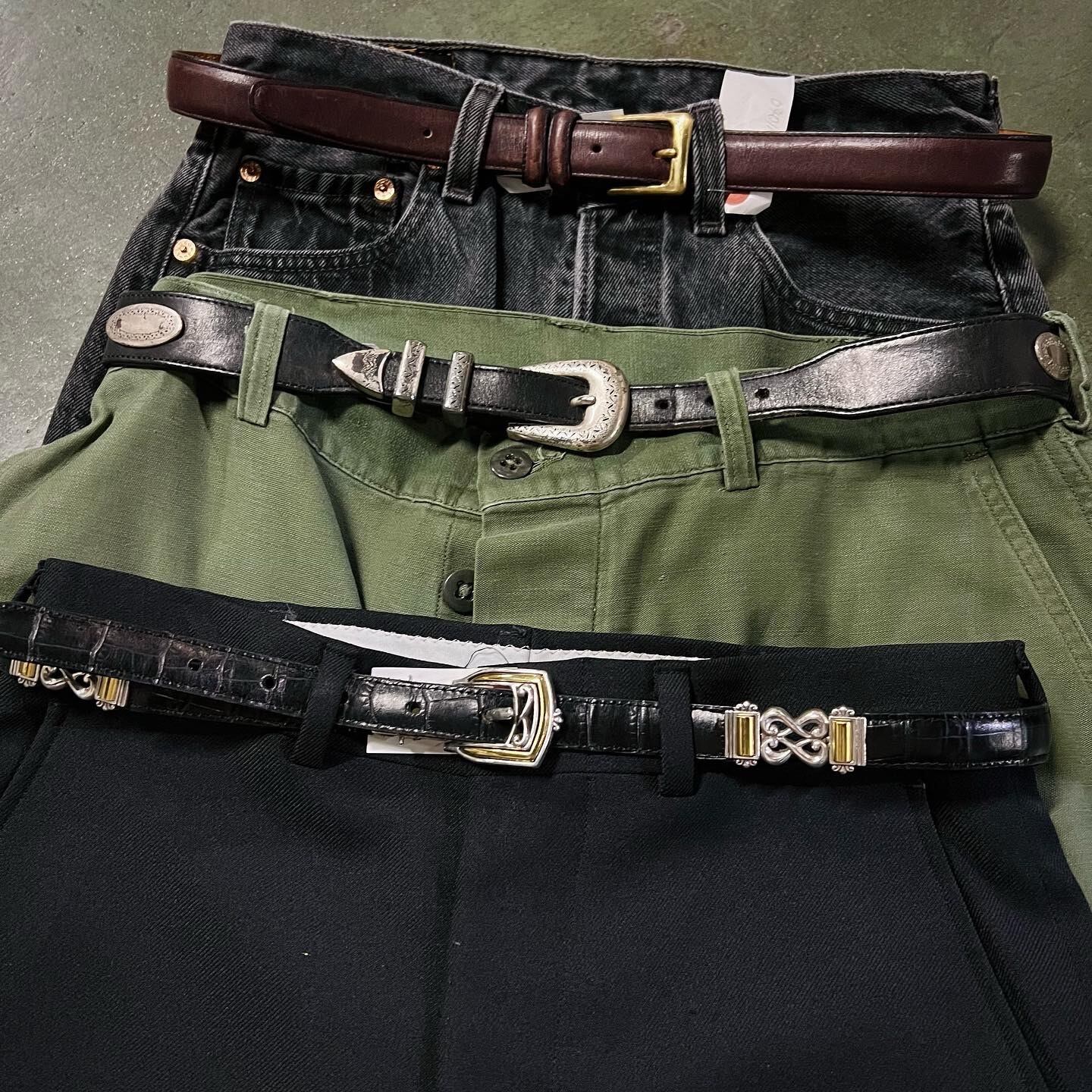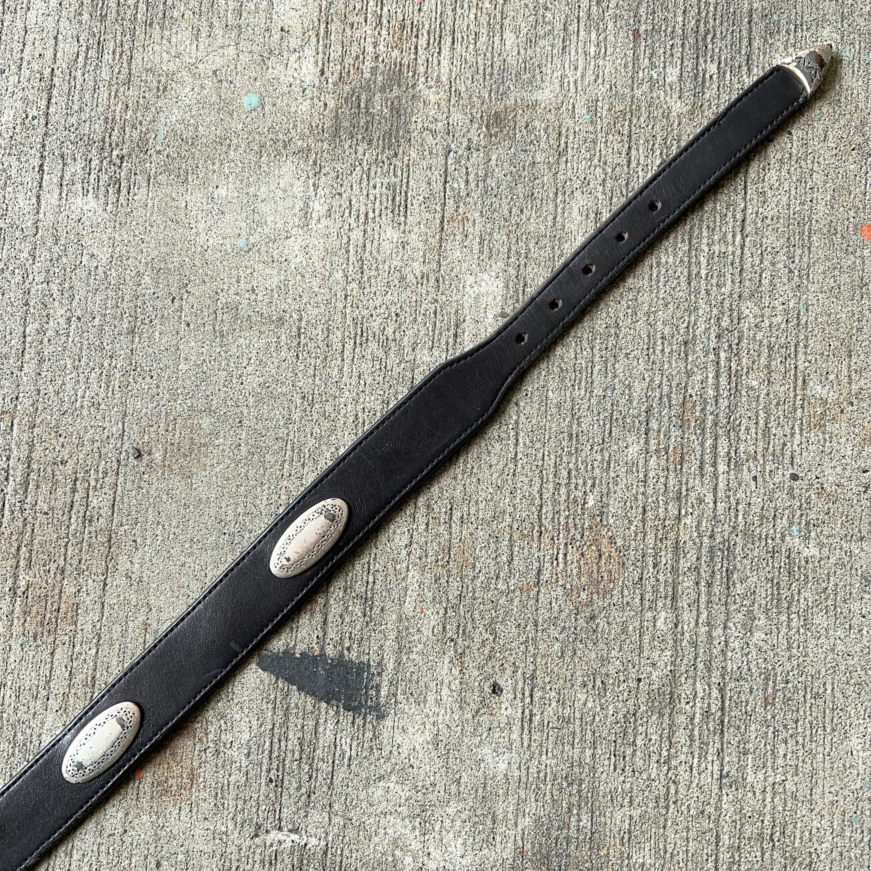 アメリカのウエスタンブランドBRIGHTONのレザーベルト。バックル付近のみ細く作られている高級ウエスタン仕様。コンチョのような飾りがカッコイイ。