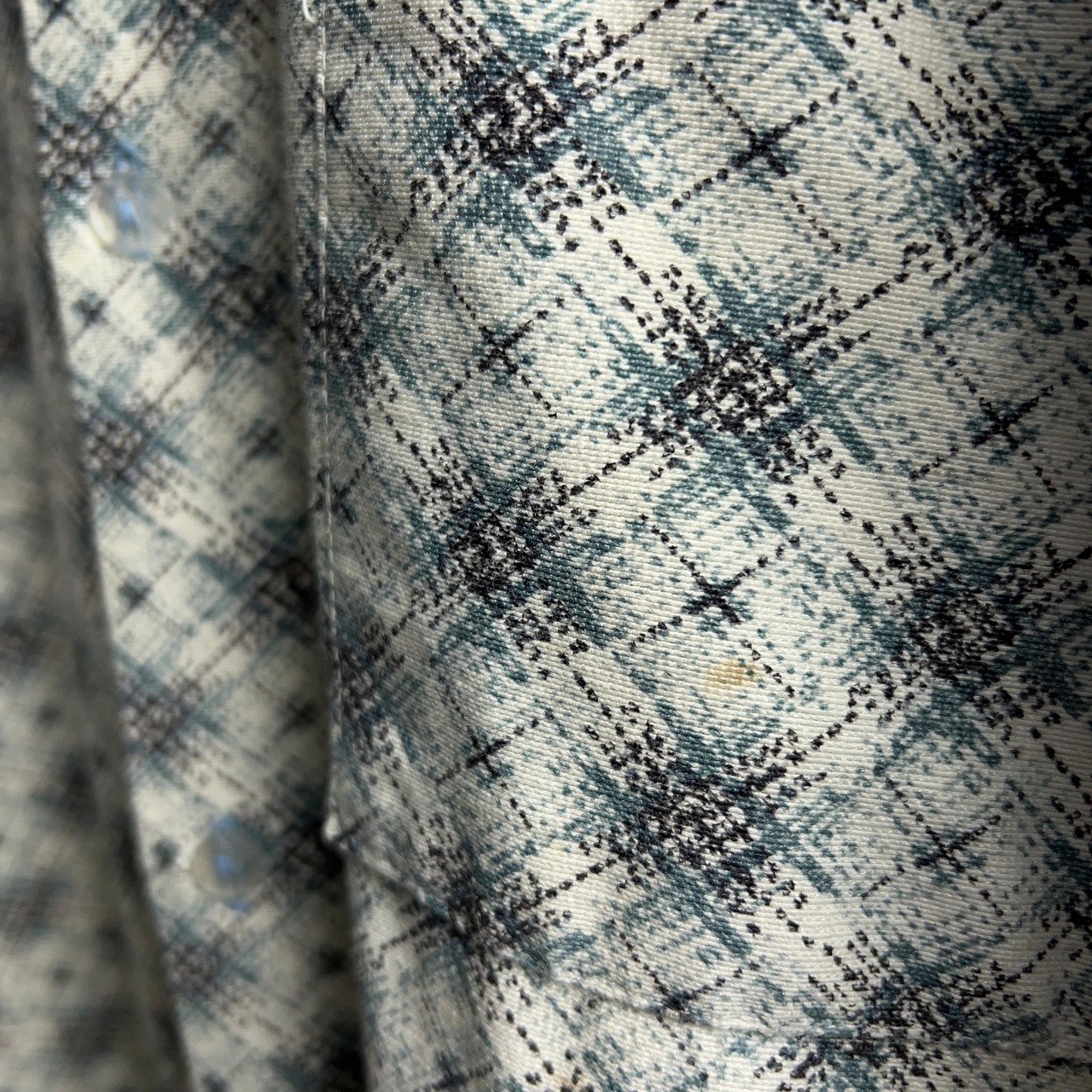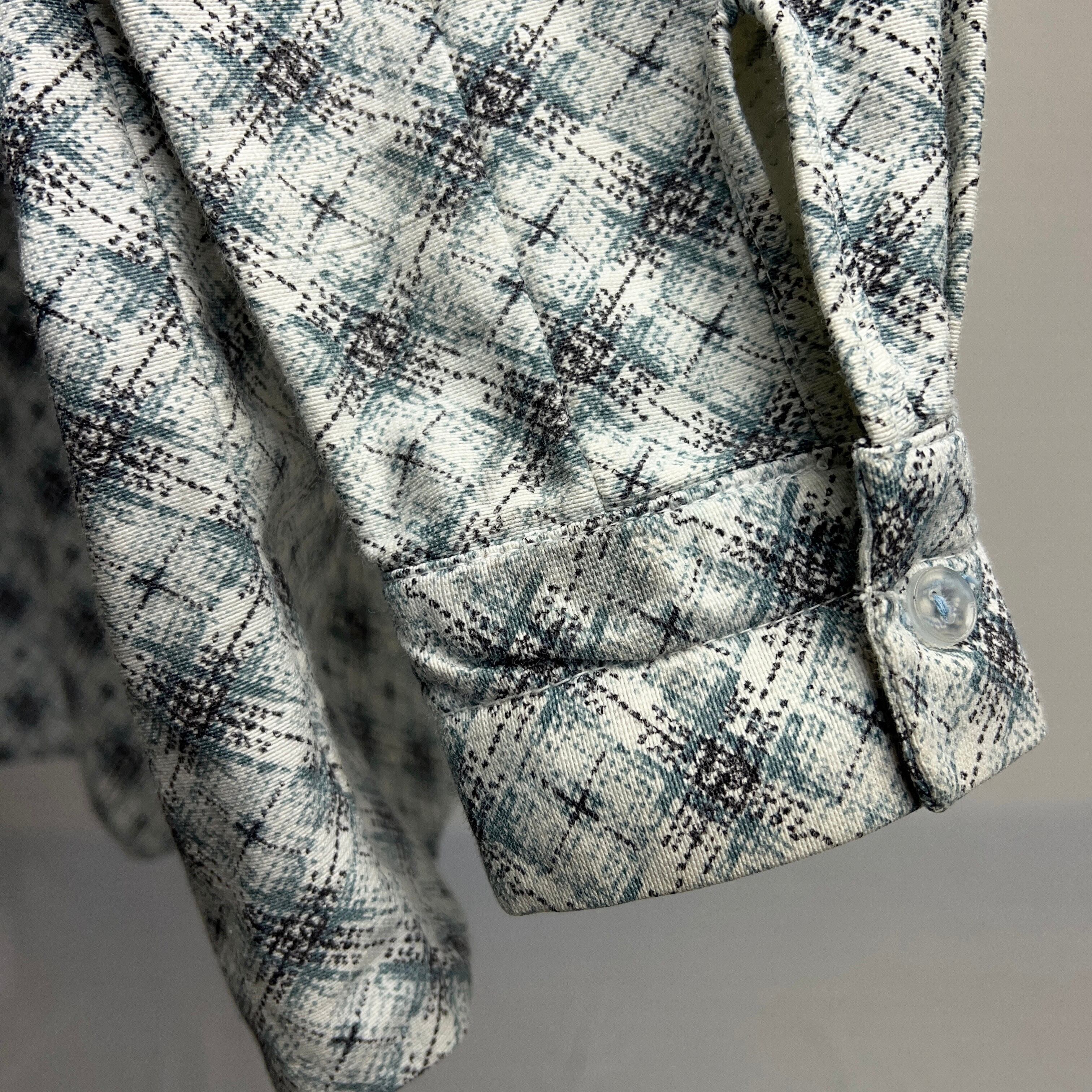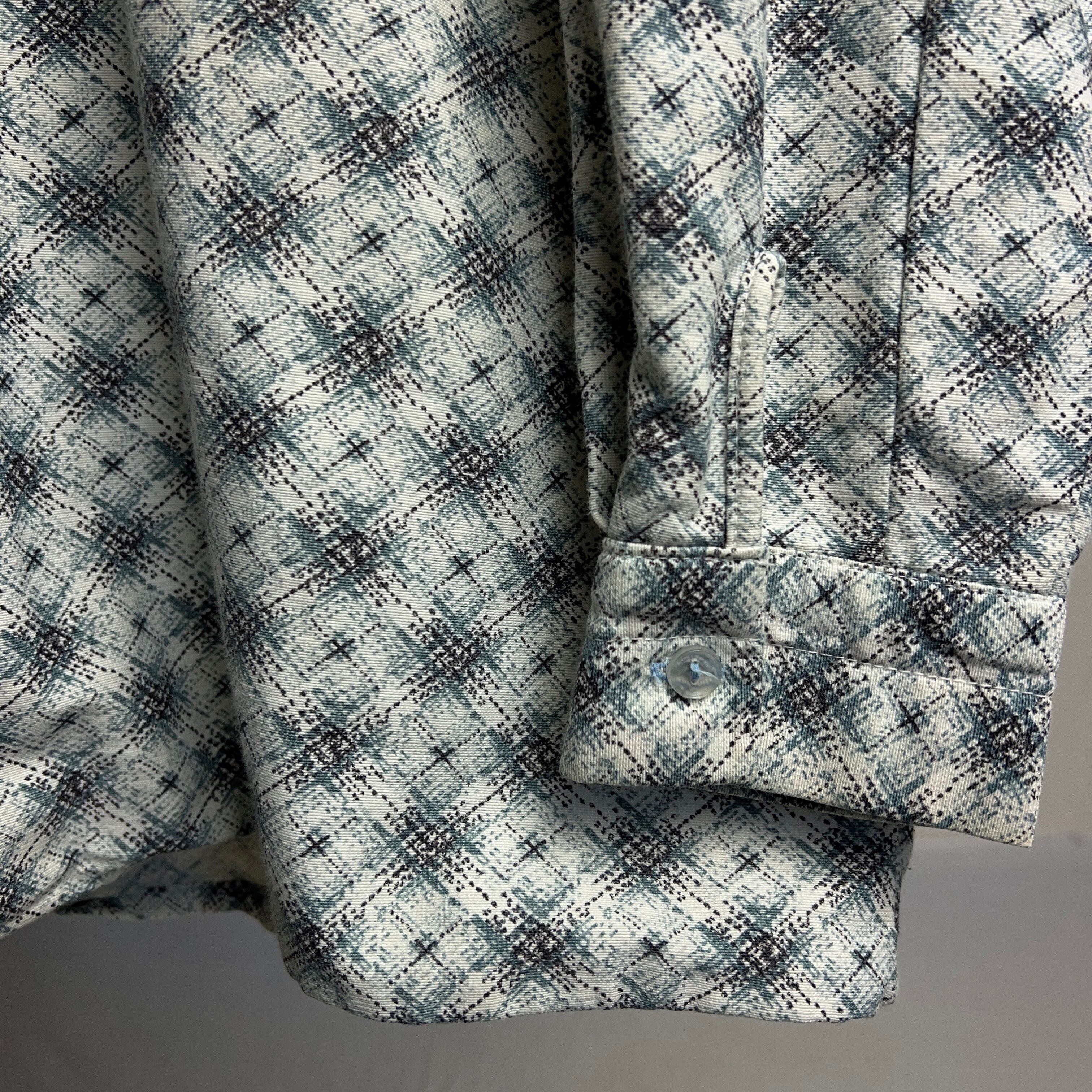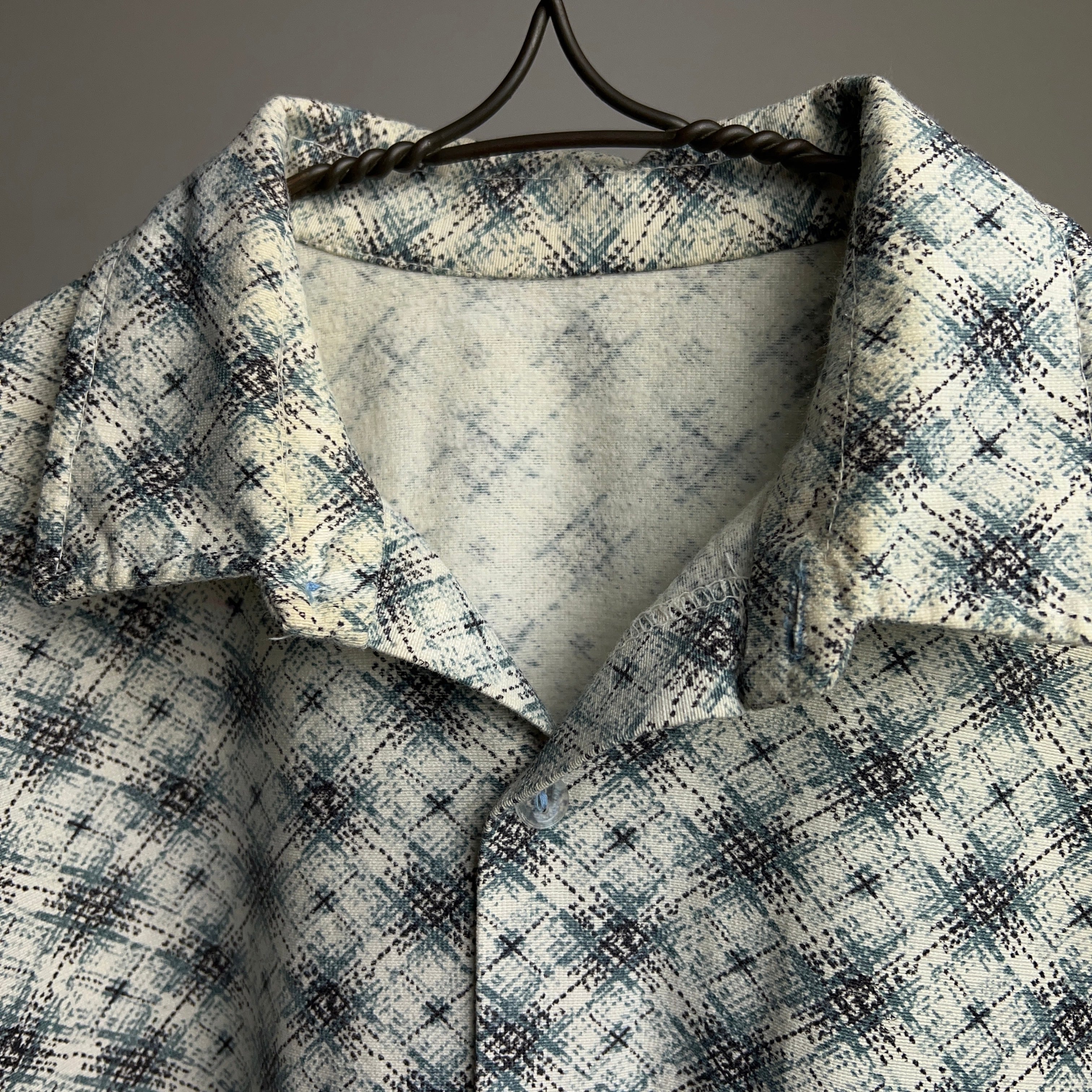 アメリカ物にはない幾何学的な総柄のプリントネルシャツ。絣柄ならようなデザインで渋さのあるオシャレ。シルエットはボックスカットでアメリカ物とも相性が良さそうです。