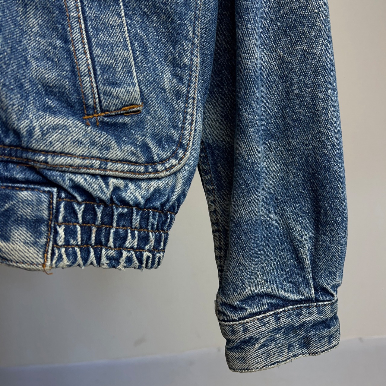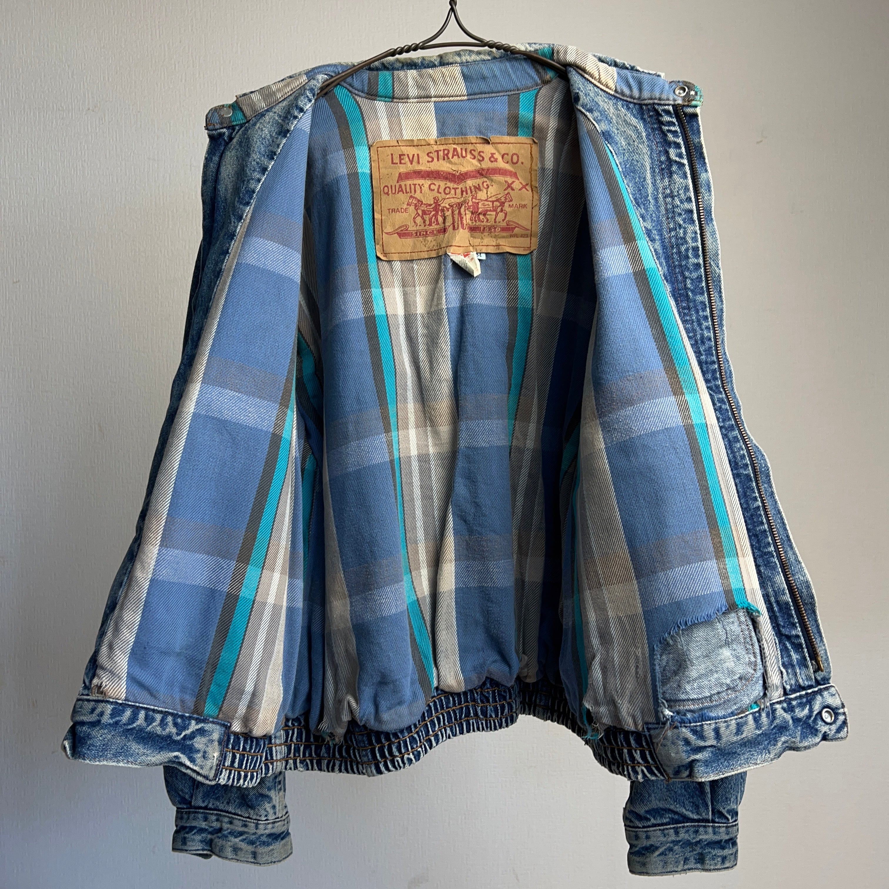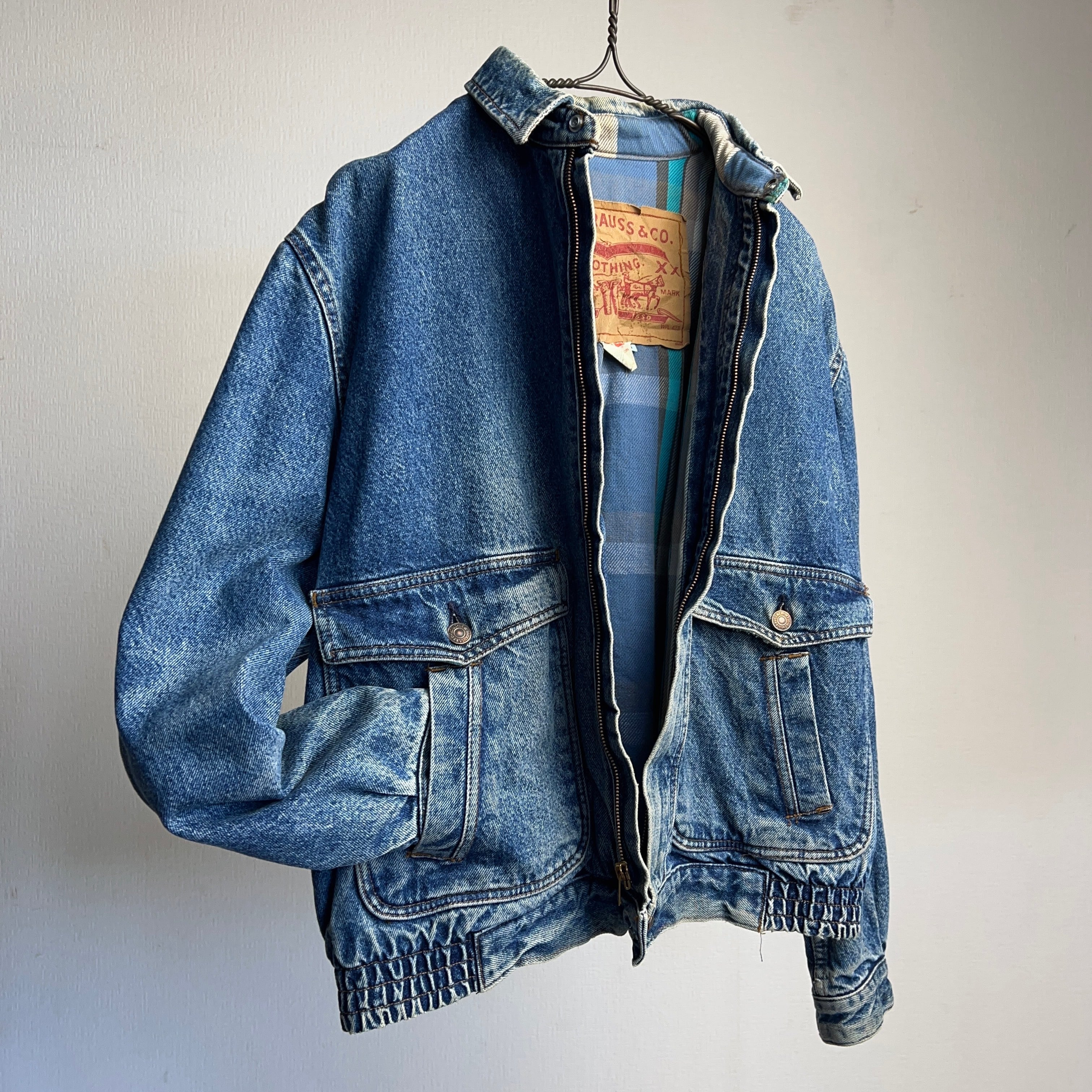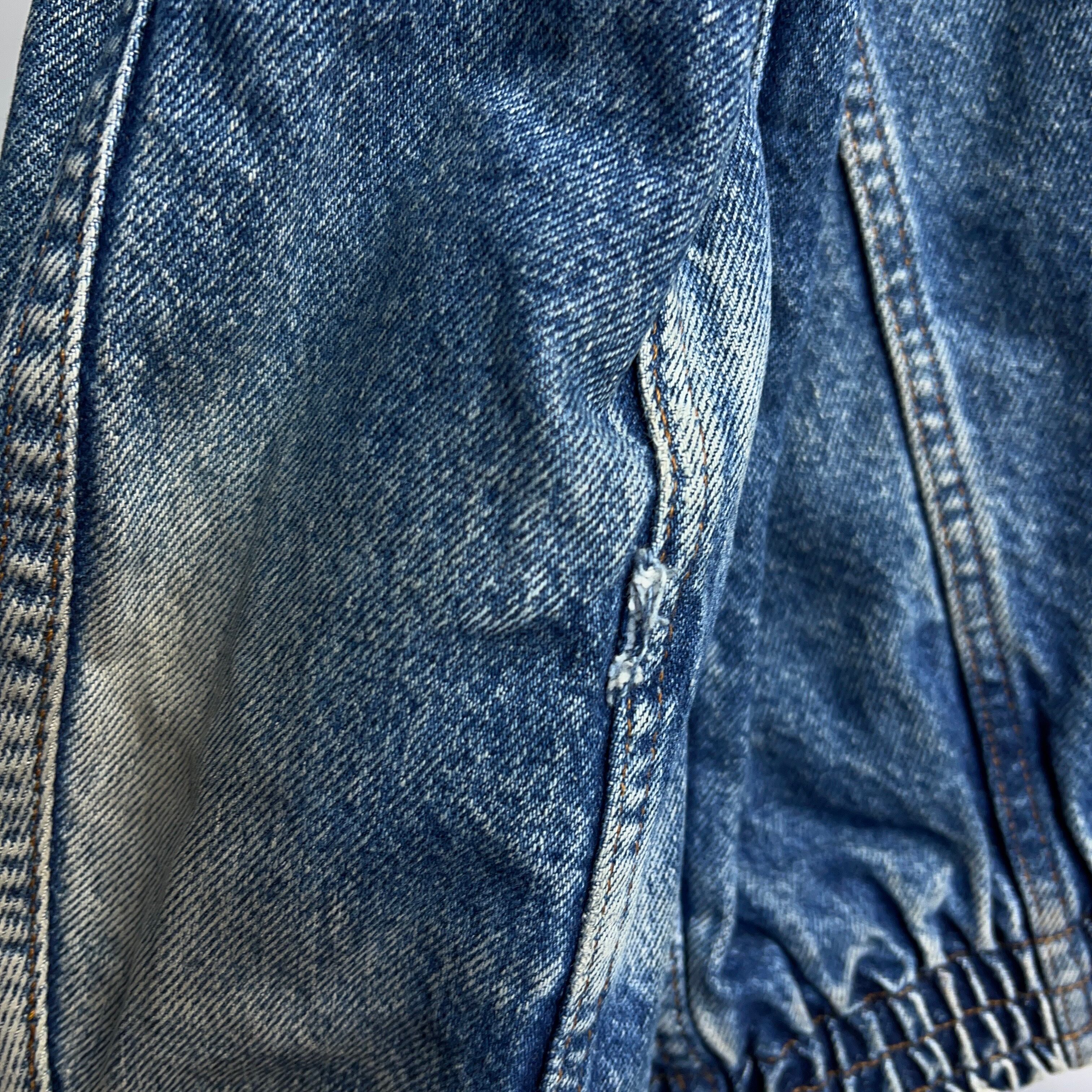 90年代リーバイスの超でかいタグ(11cm×15cm)通称"デカタグ"が取り付けられたビンテージデニムジャケット。