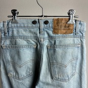 世にも珍しいLevi'sの"サスペンダーボタン付き"デニムパンツ。太ももから裾にかけて細くなるテーパードシルエット。