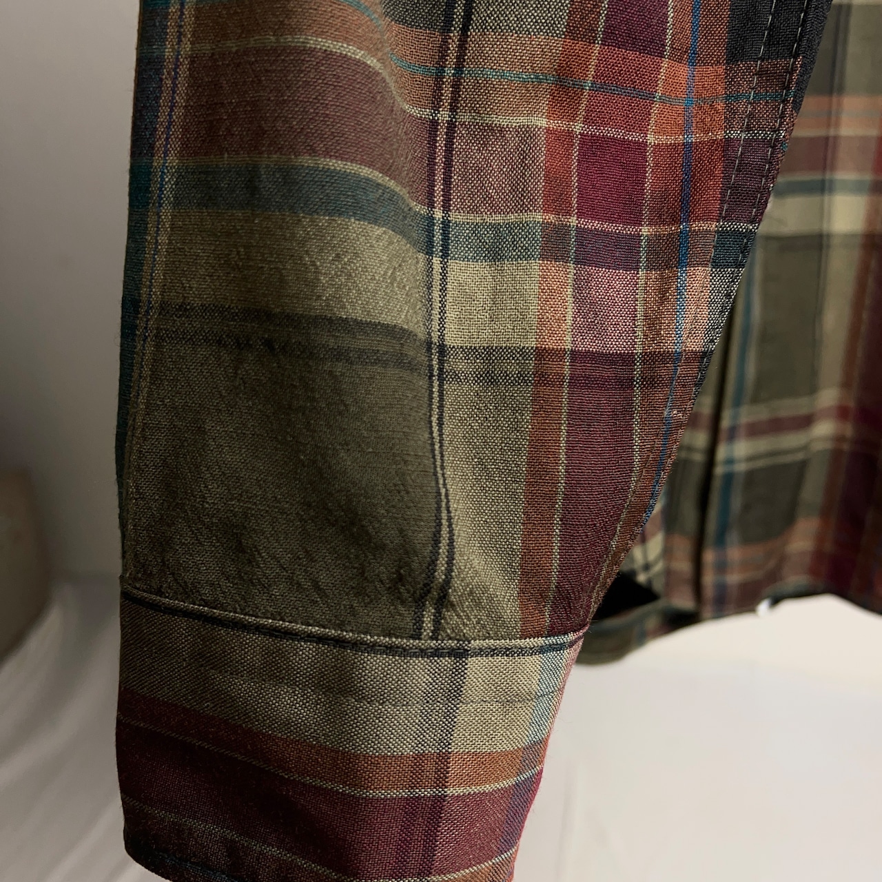 通常のペンドルトンの紡毛ウールではなく梳毛ウールを使うことで生地が薄く、滑らかな肌触りとなっているのが特徴。