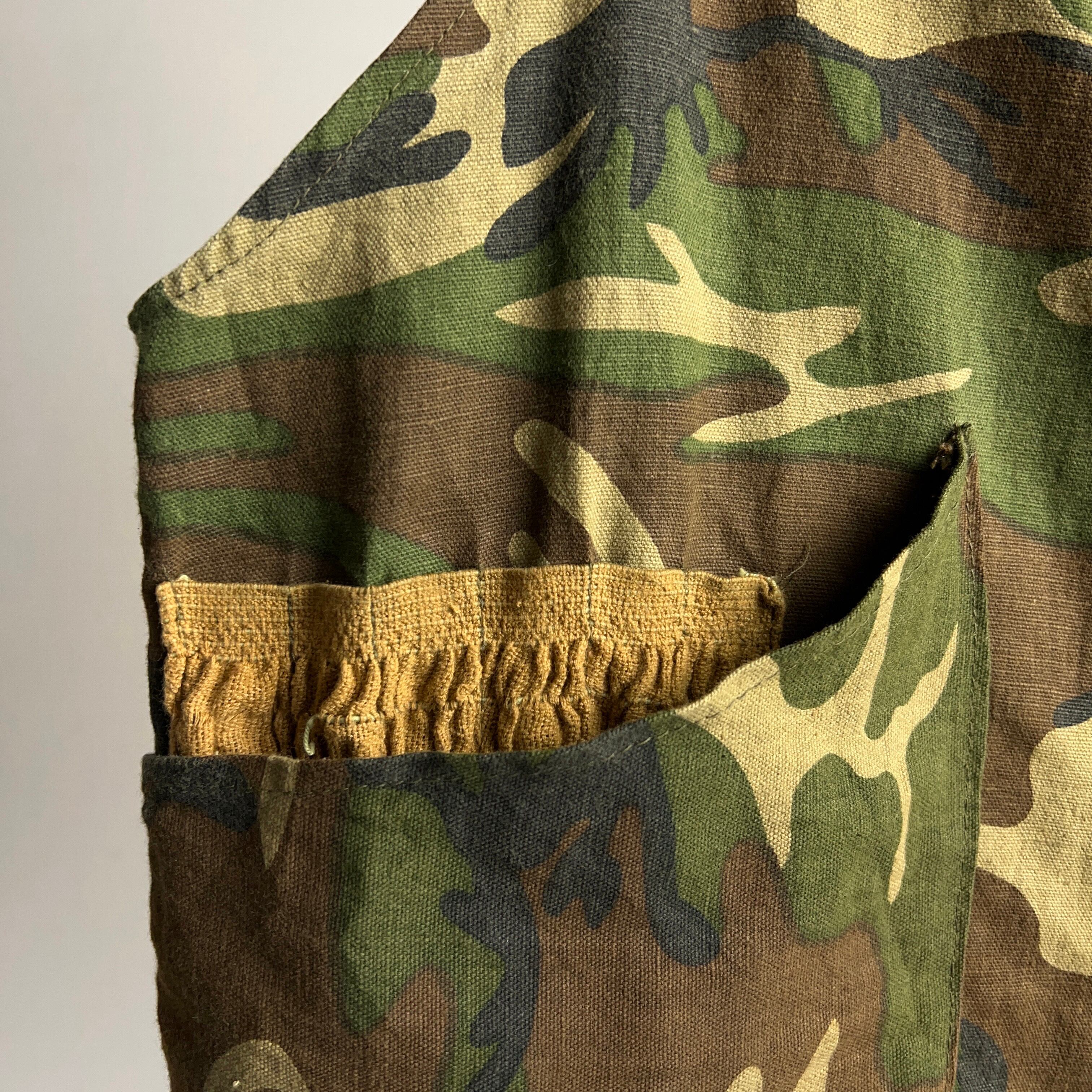 カモフラージュ柄のハンティングベスト。