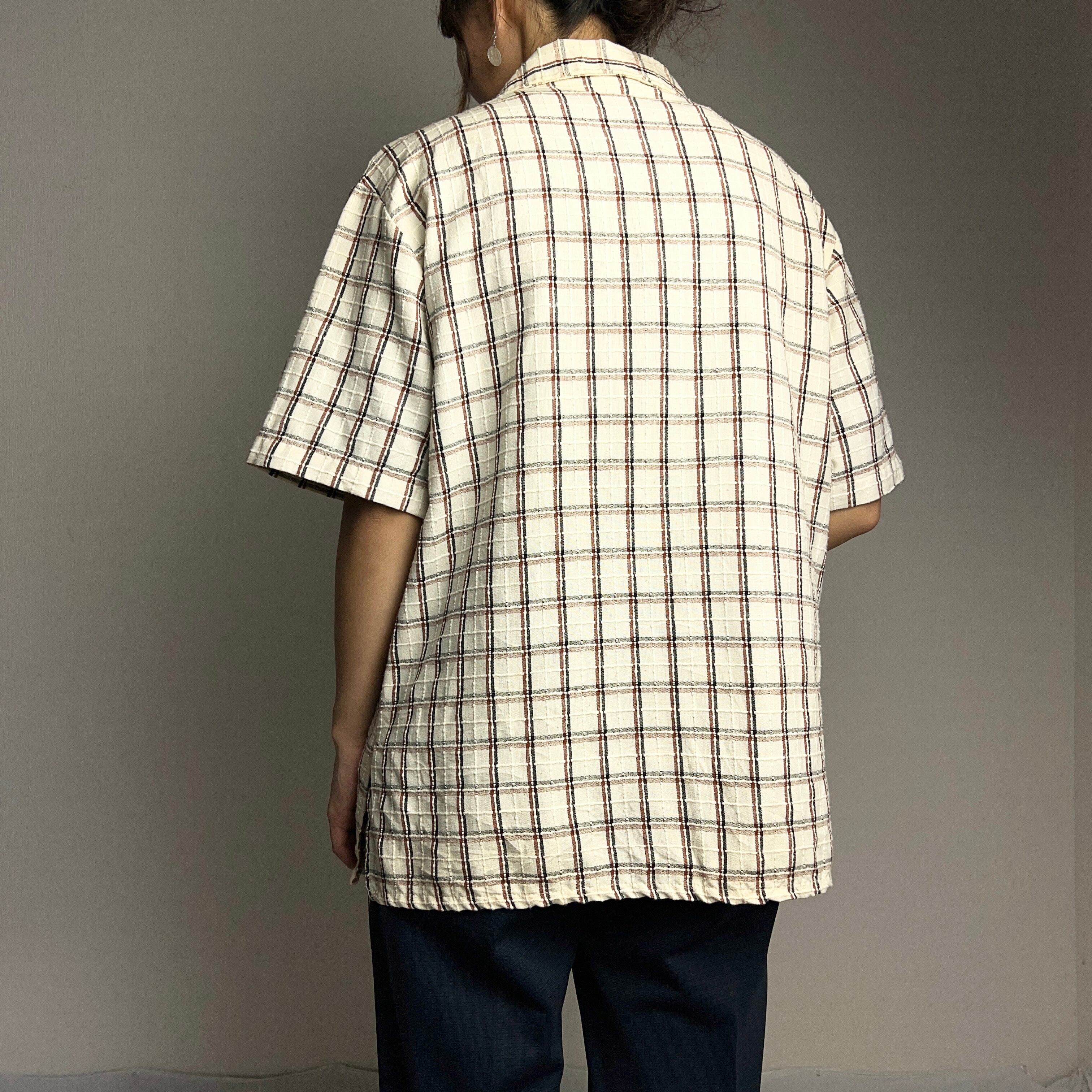 70's~80's Jantzen OpenCollar Plaid Shirt SIZE L 【0707A15】【ネコポス発送可能】