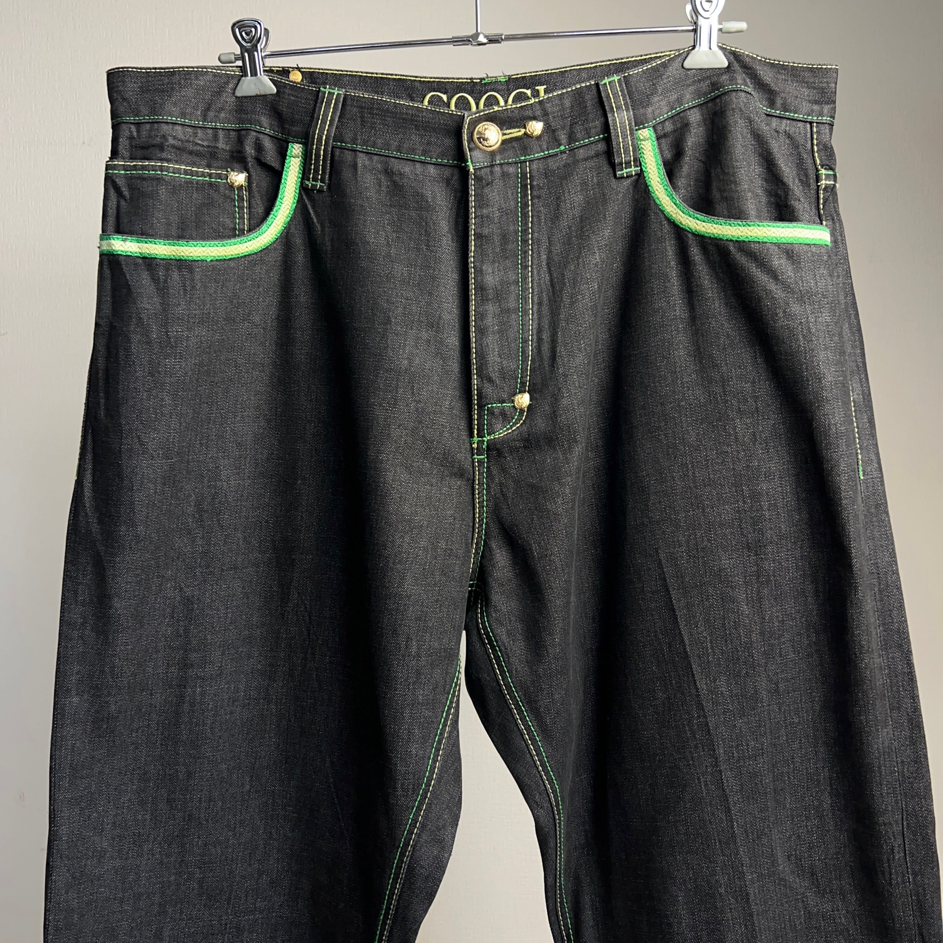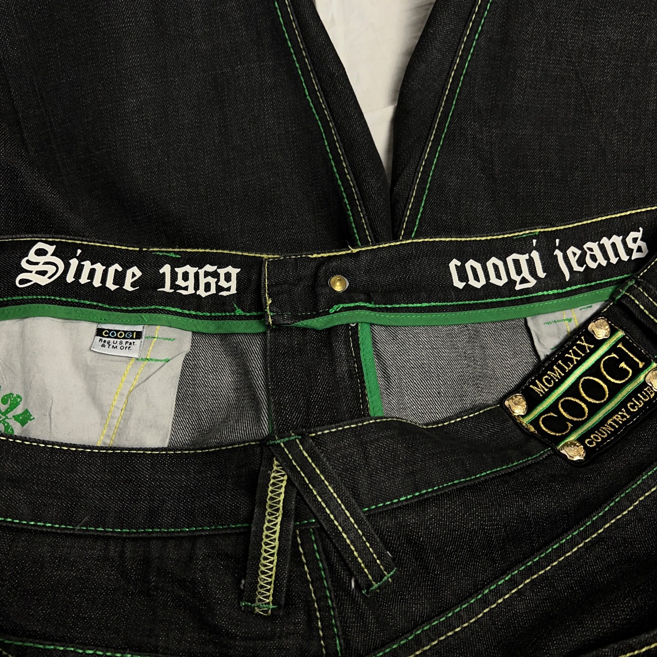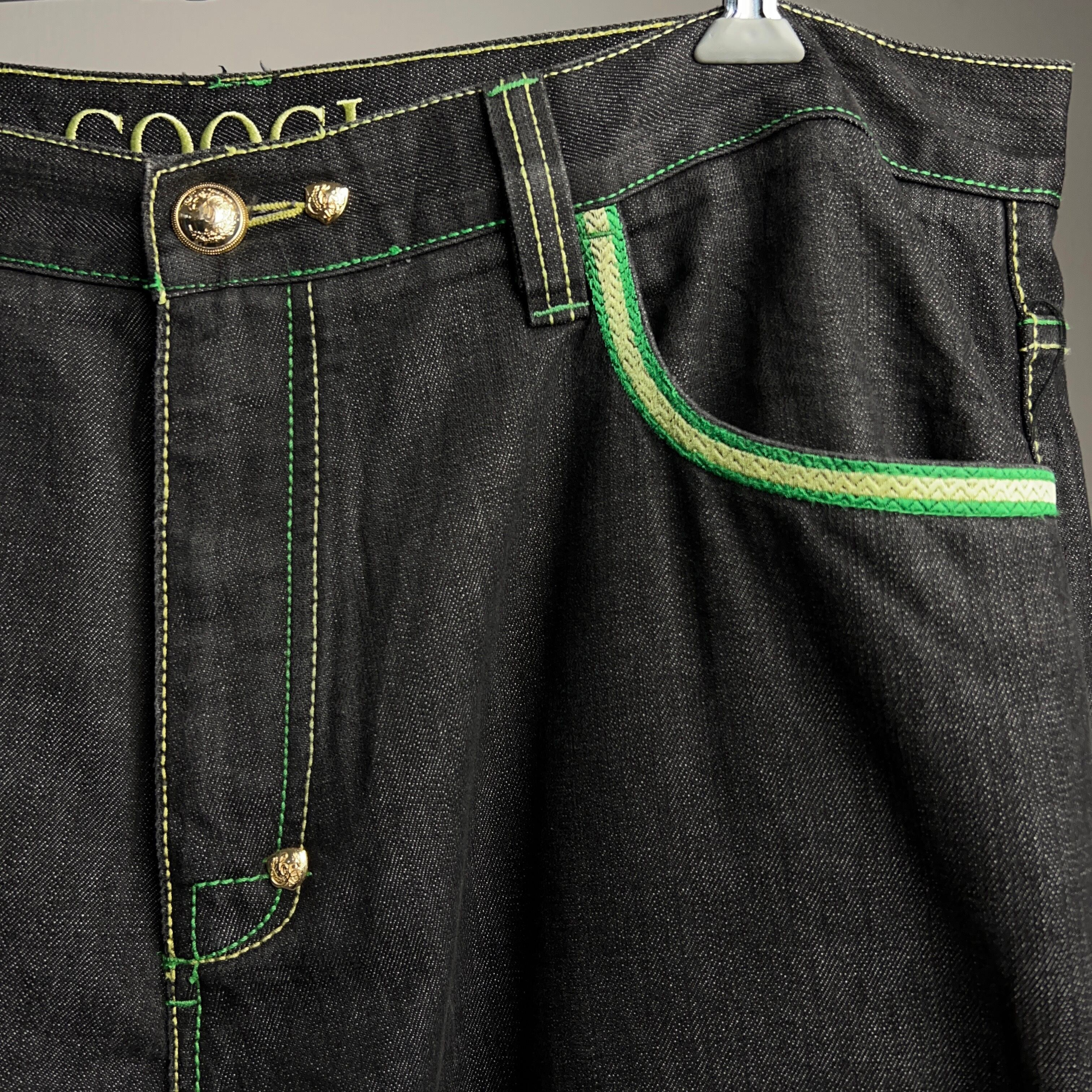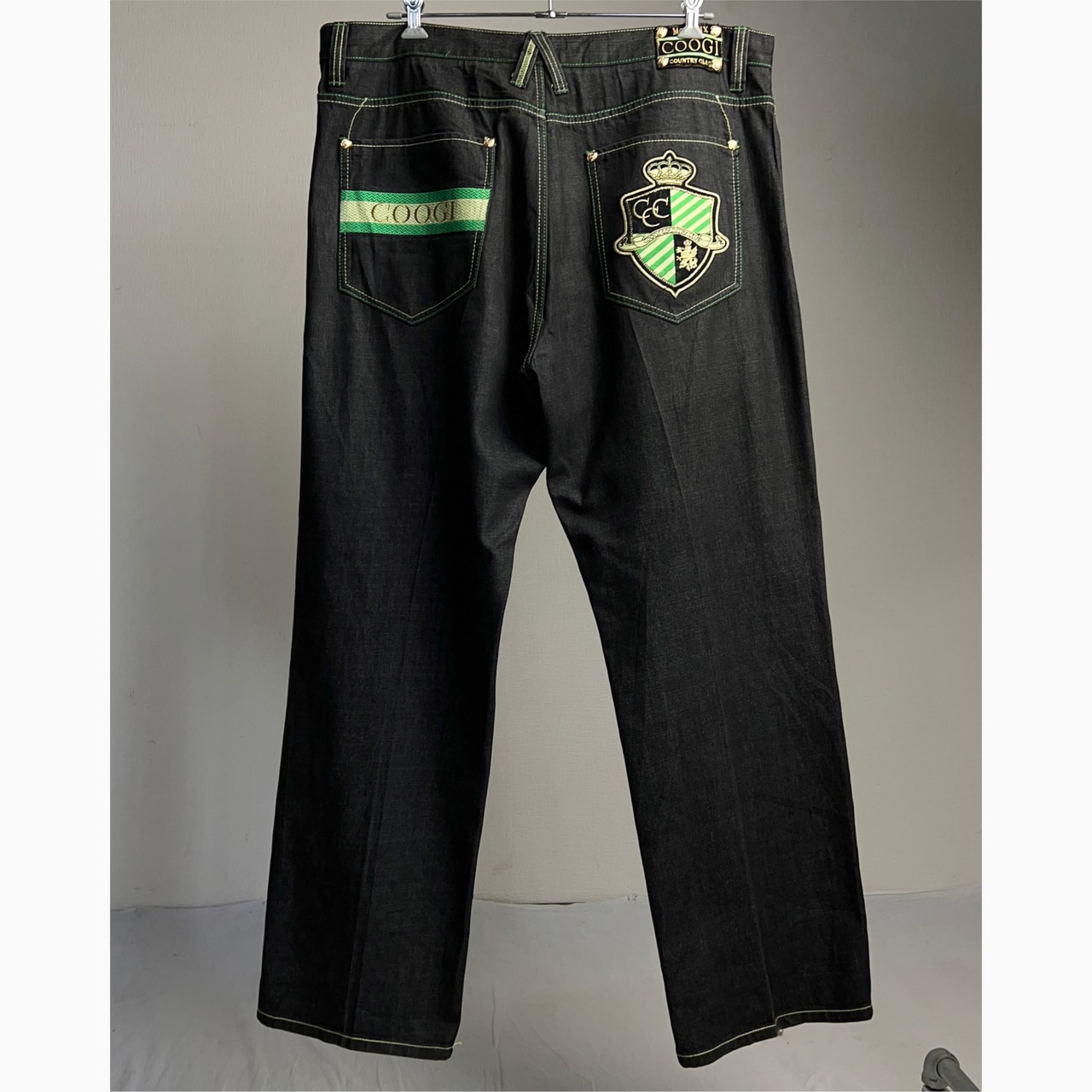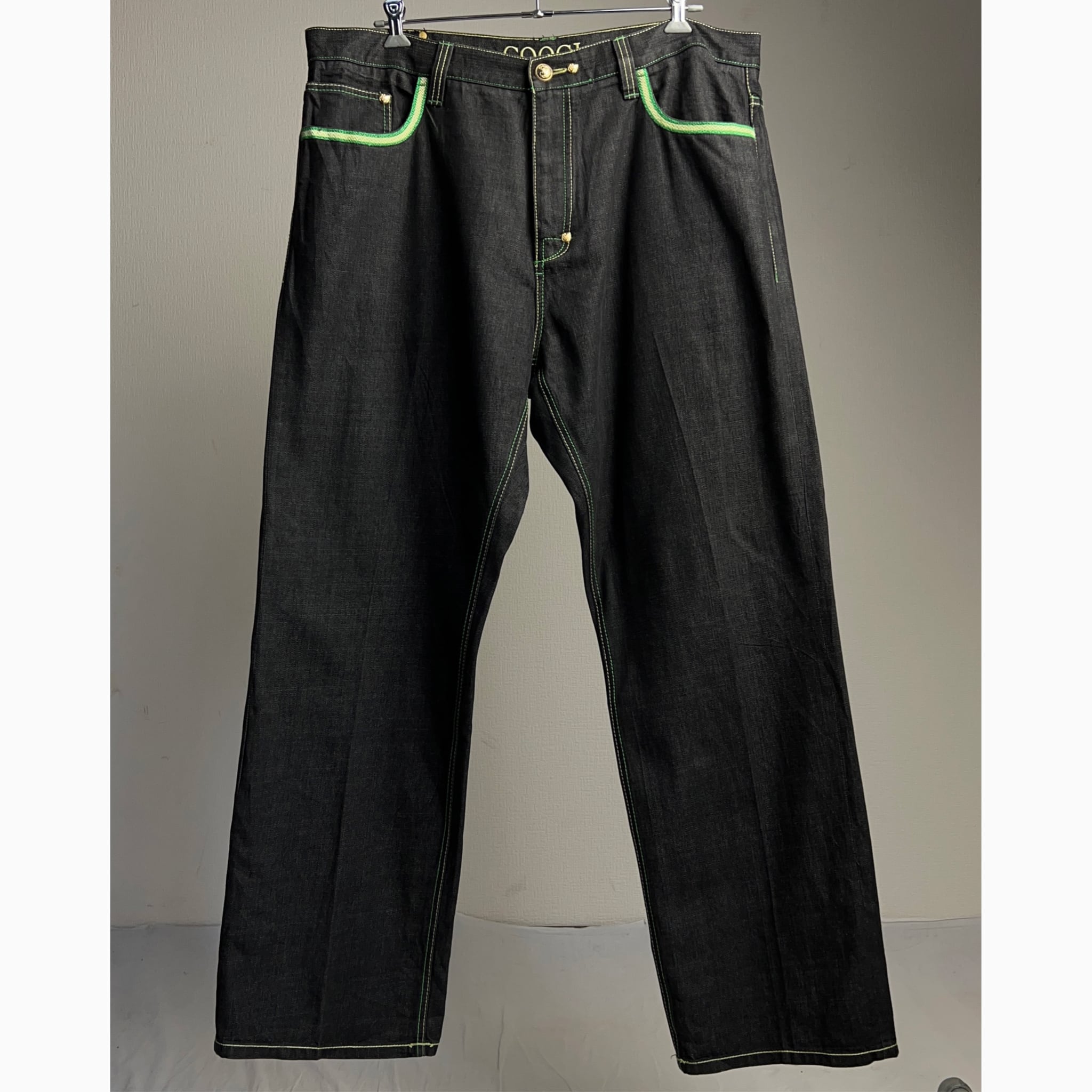 “COOGI” BLACK DENIM WIDE PANTS W44 クージー ワイド ブラックデニムパンツ 刺繍【0801A02】【送料無料】