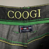 3Dニットで有名なCOOGI(クージー)のワイドブラックデニムパンツ。