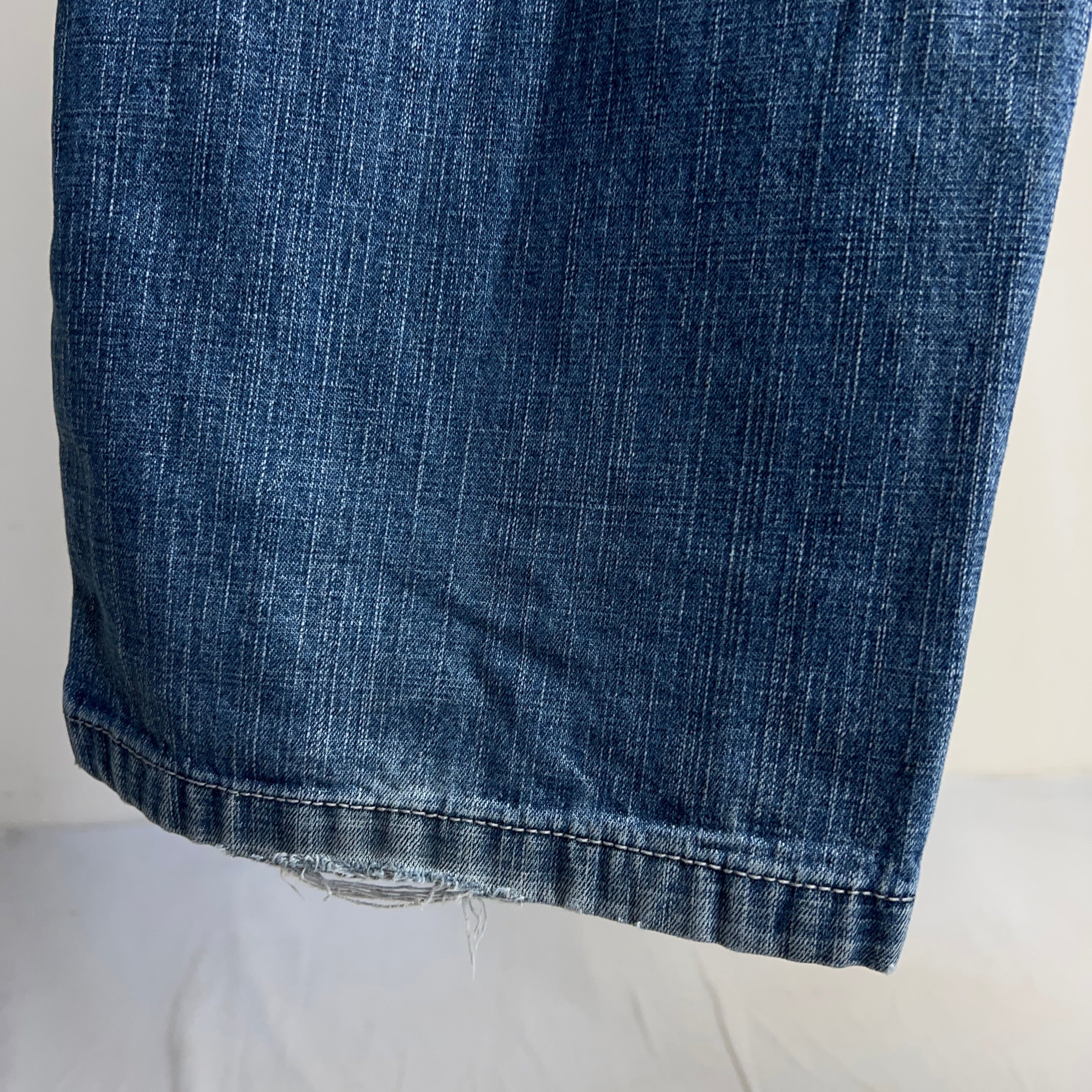 ウエストが34の割にワイドシルエット(極太)で履けるバギーデニム仕様。