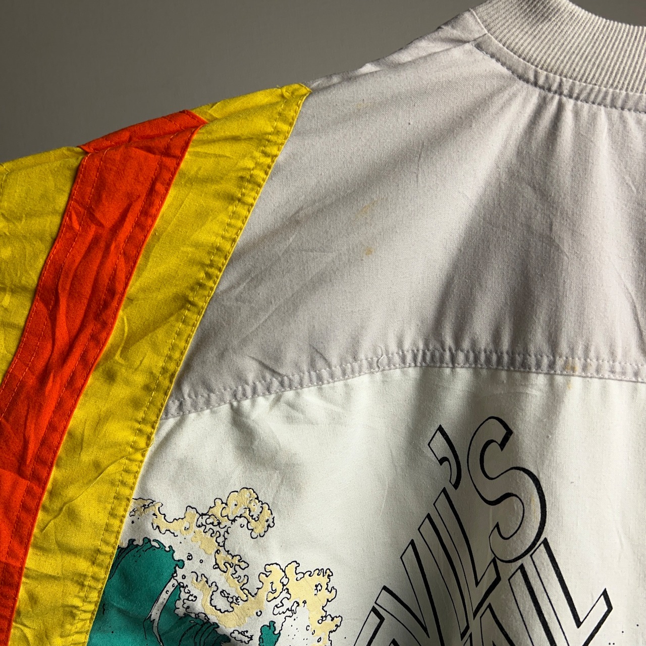 ロゴやカヤックの細かな刺繍や、袖の色の切り返しなどオールドスクール感漂うクールな1着。