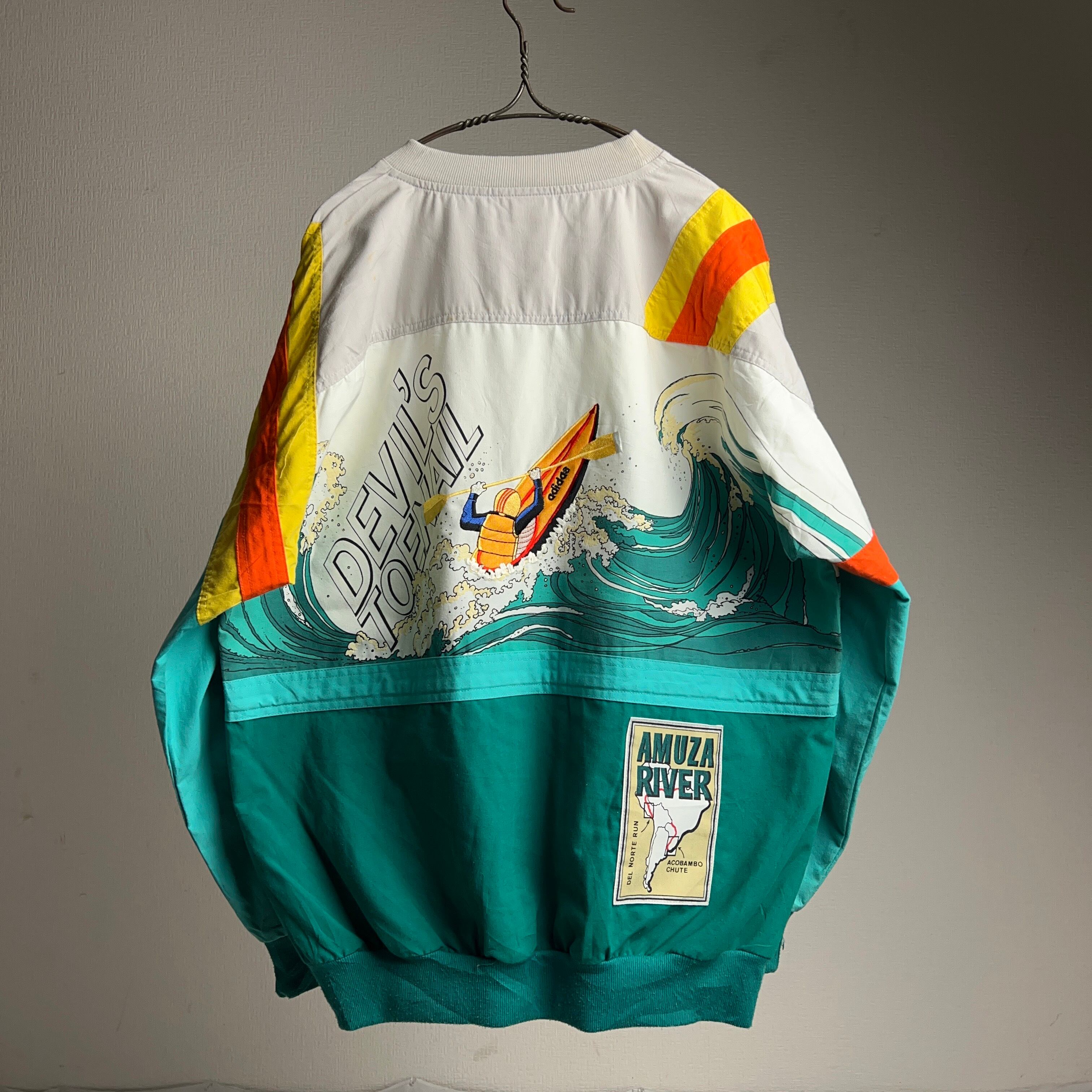 80's adidas(アディダス)の南米「AMUZA RIVER」カヤックレースデザインのプルオーバースウェット。