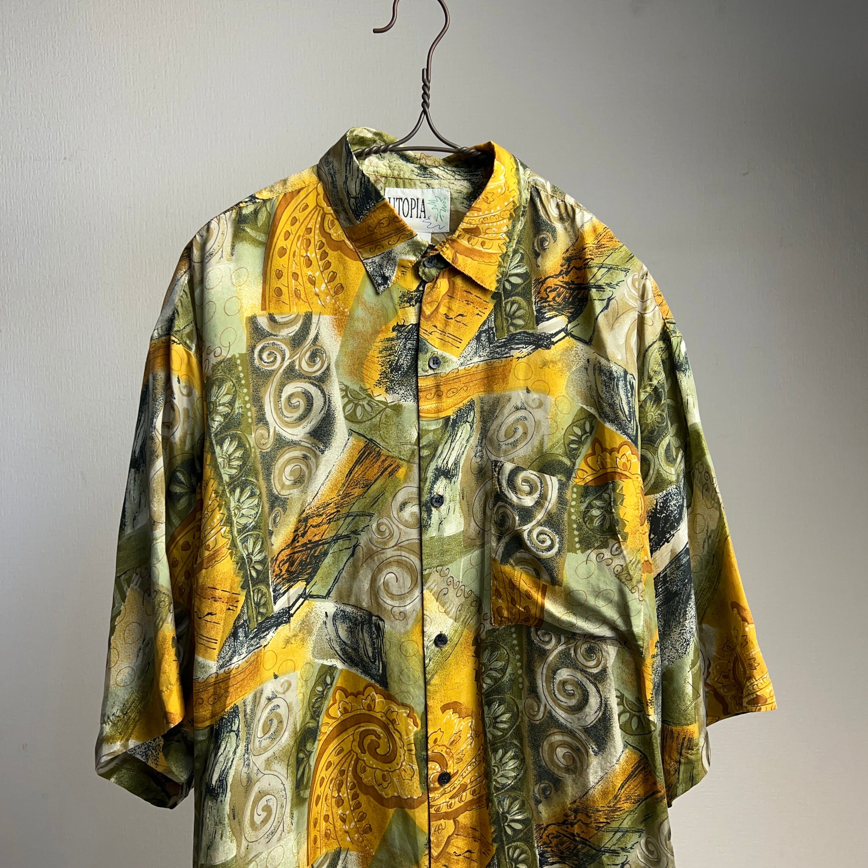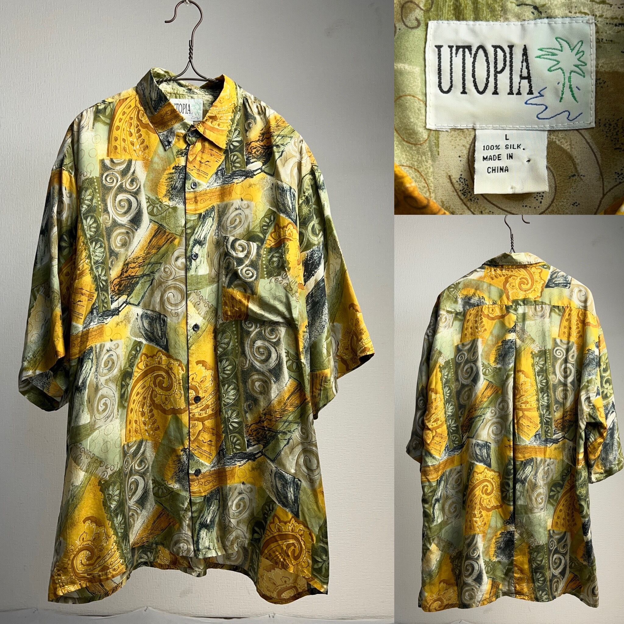 “UTOPIA” Art Pattern S/S SILK SHIRT SIZE L 総柄シャツ シルク アート 半袖シャツ【0801A34】【ネコポス発送可能】