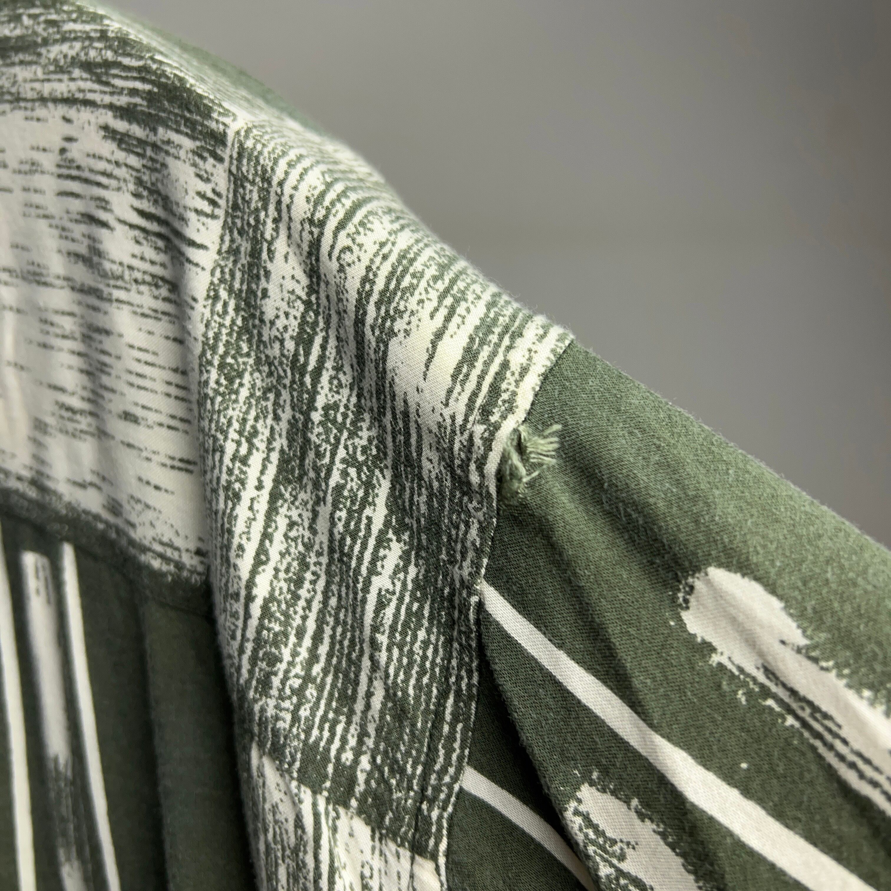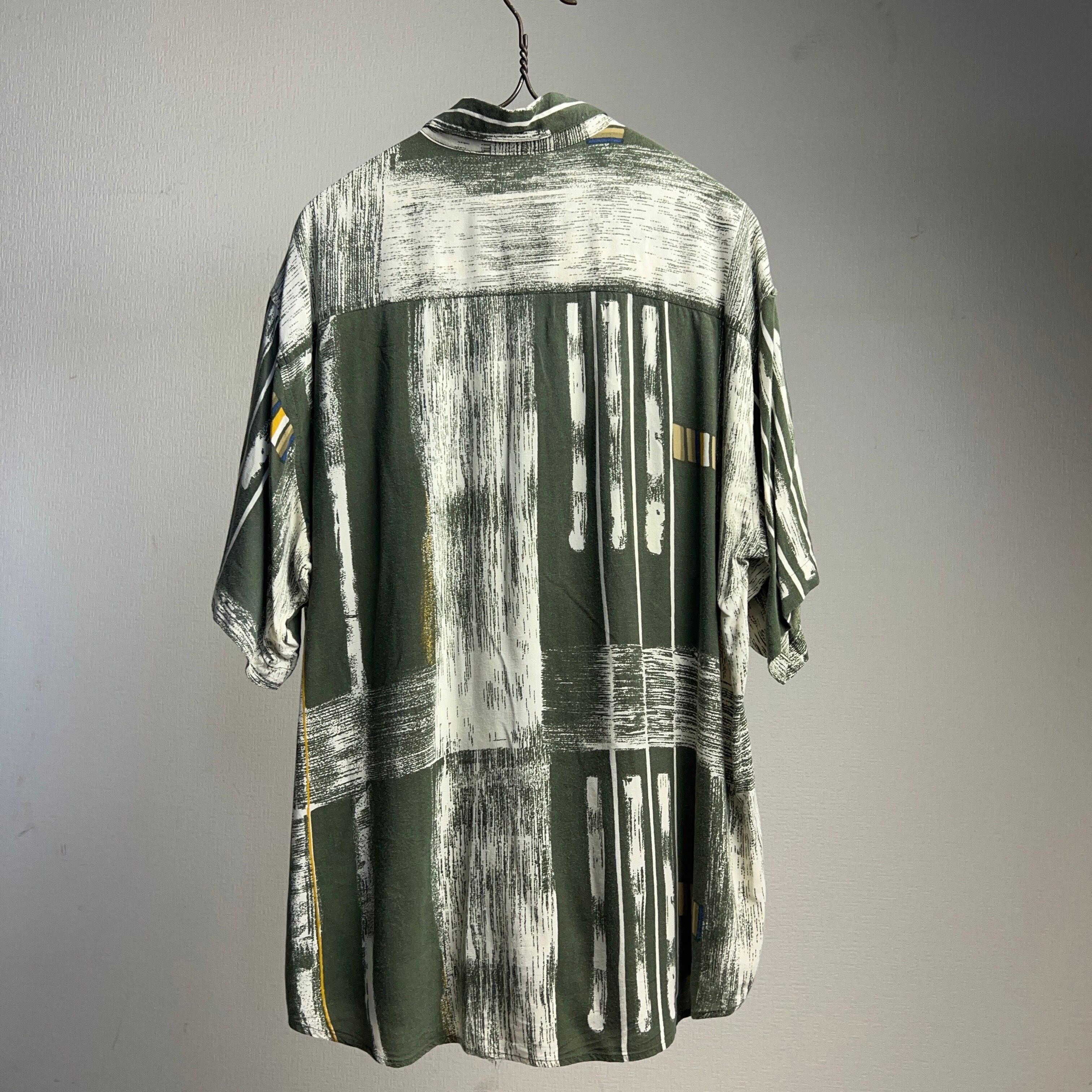 90's~ Rayon Art Pattern Shirt DarkGreen レーヨン 総柄シャツ 半袖シャツ 古着 アート【0801A36】【ネコポス発送可能】
