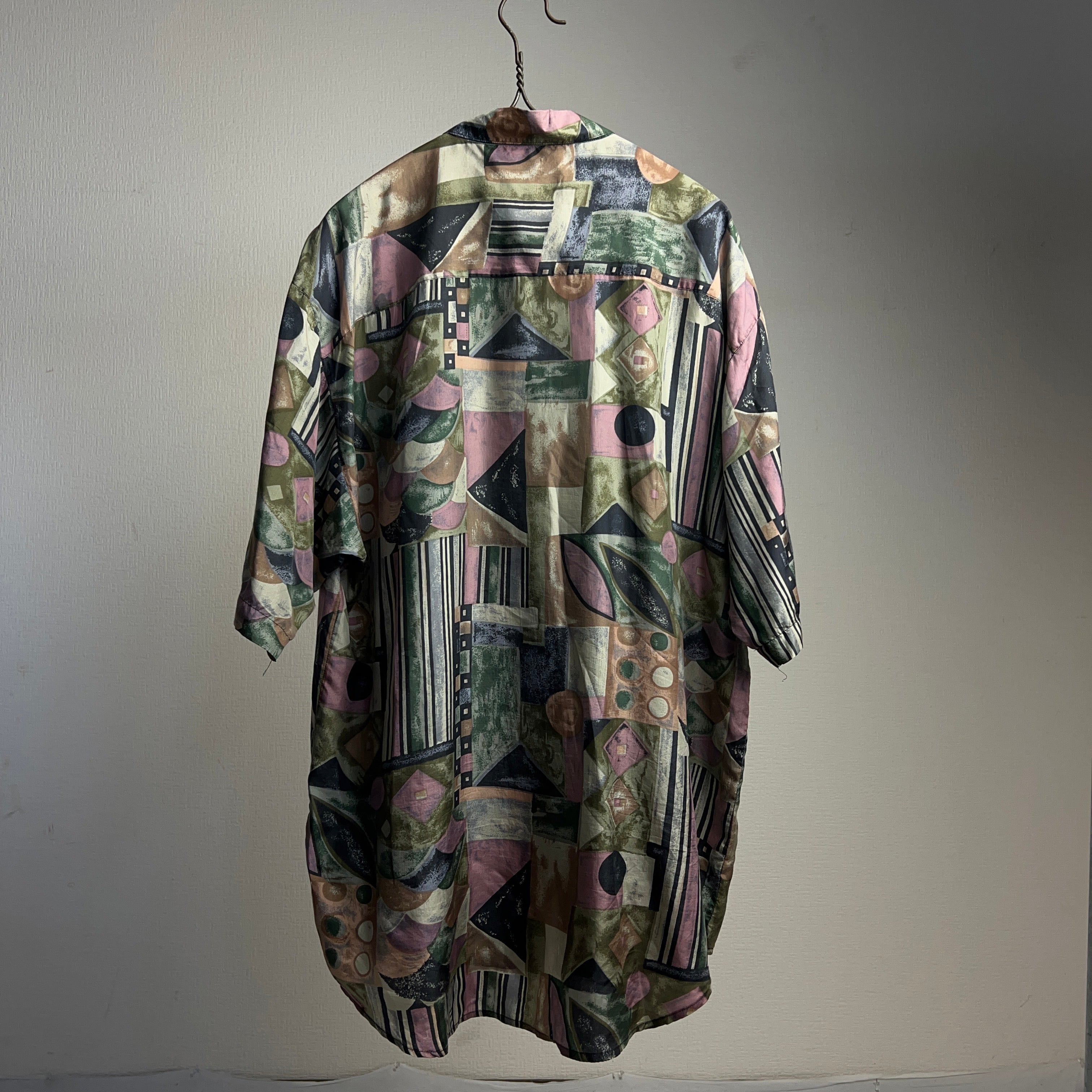 90's~ "SANTANA" Silk Art Pattern Shirt シルク総柄シャツ シルクシャツ アート【0801A37】【ネコポス発送可能】