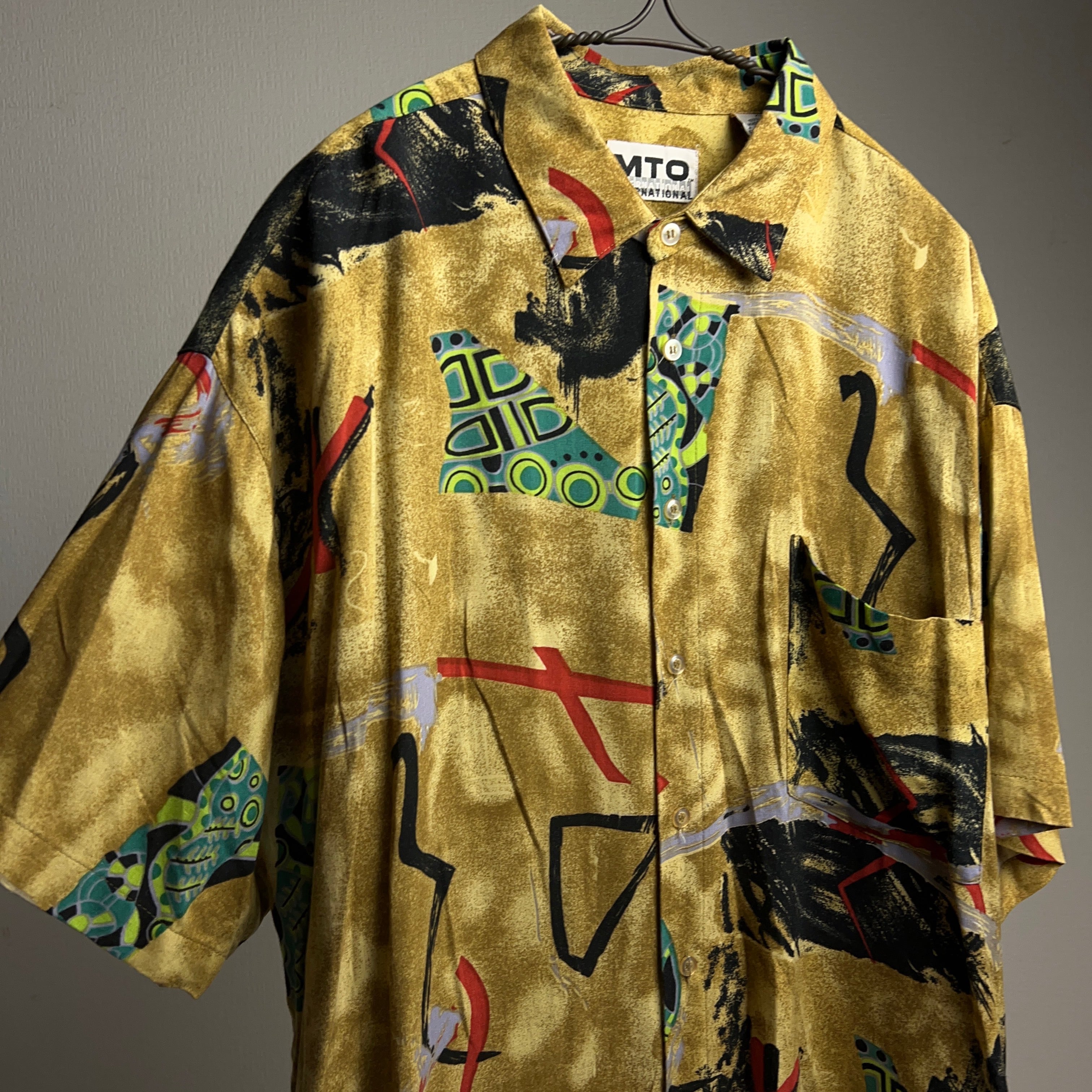 90's~ MTO Art Pattern Rayon Shirt 総柄シャツ レーヨン アート 半袖シャツ【0801A42】【ネコポス発送可能】