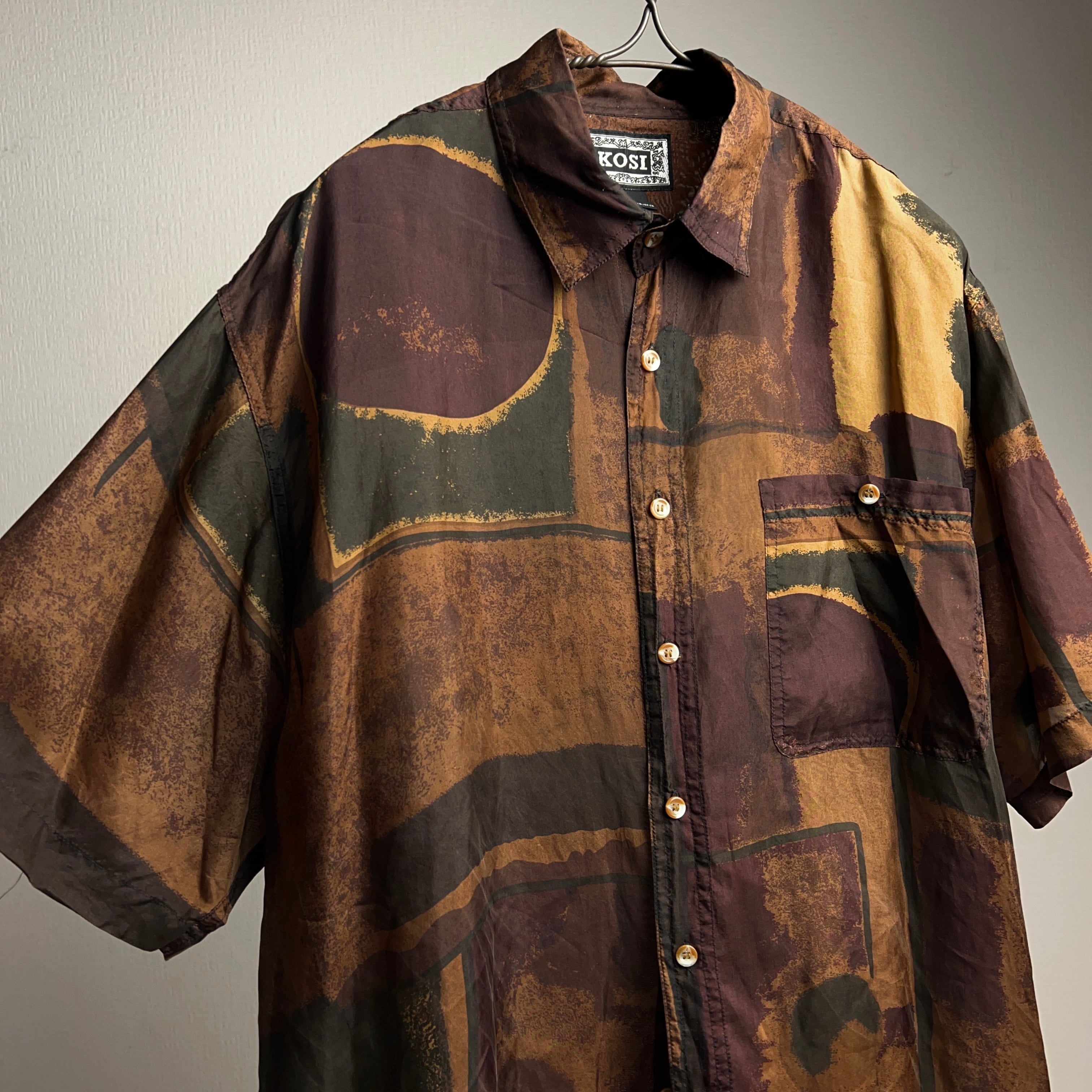 "KOSI" Art Pattern Silk Shirt アート 総柄シャツ 80年代 90年代 アースカラー【0801A44】【ネコポス発送可能】