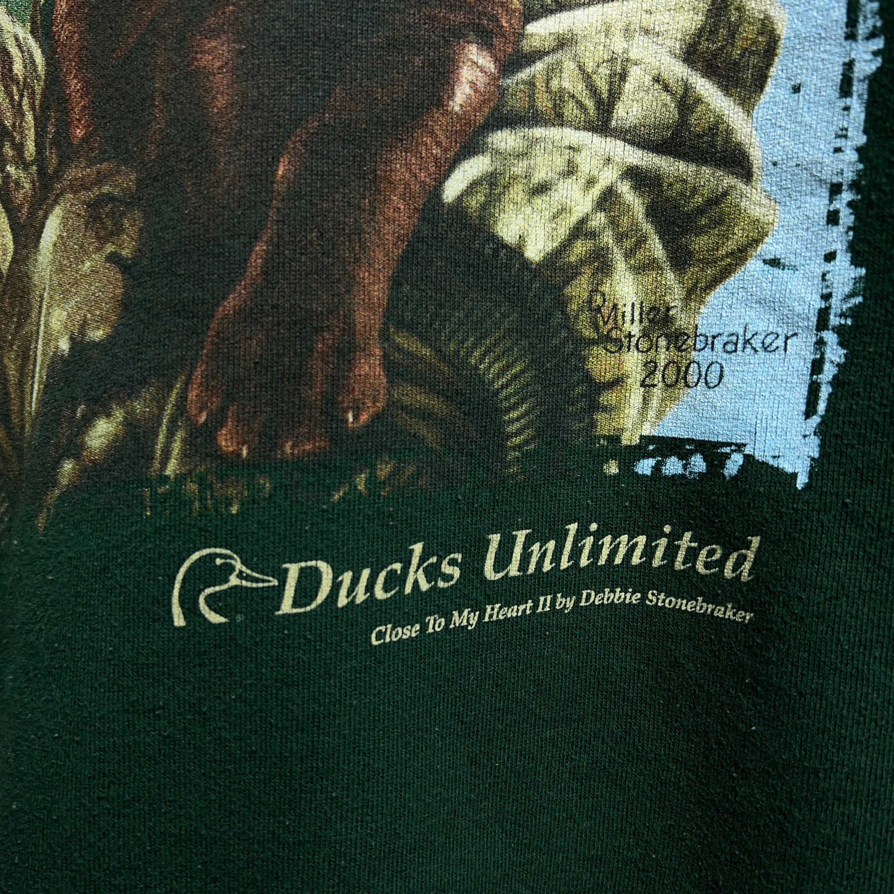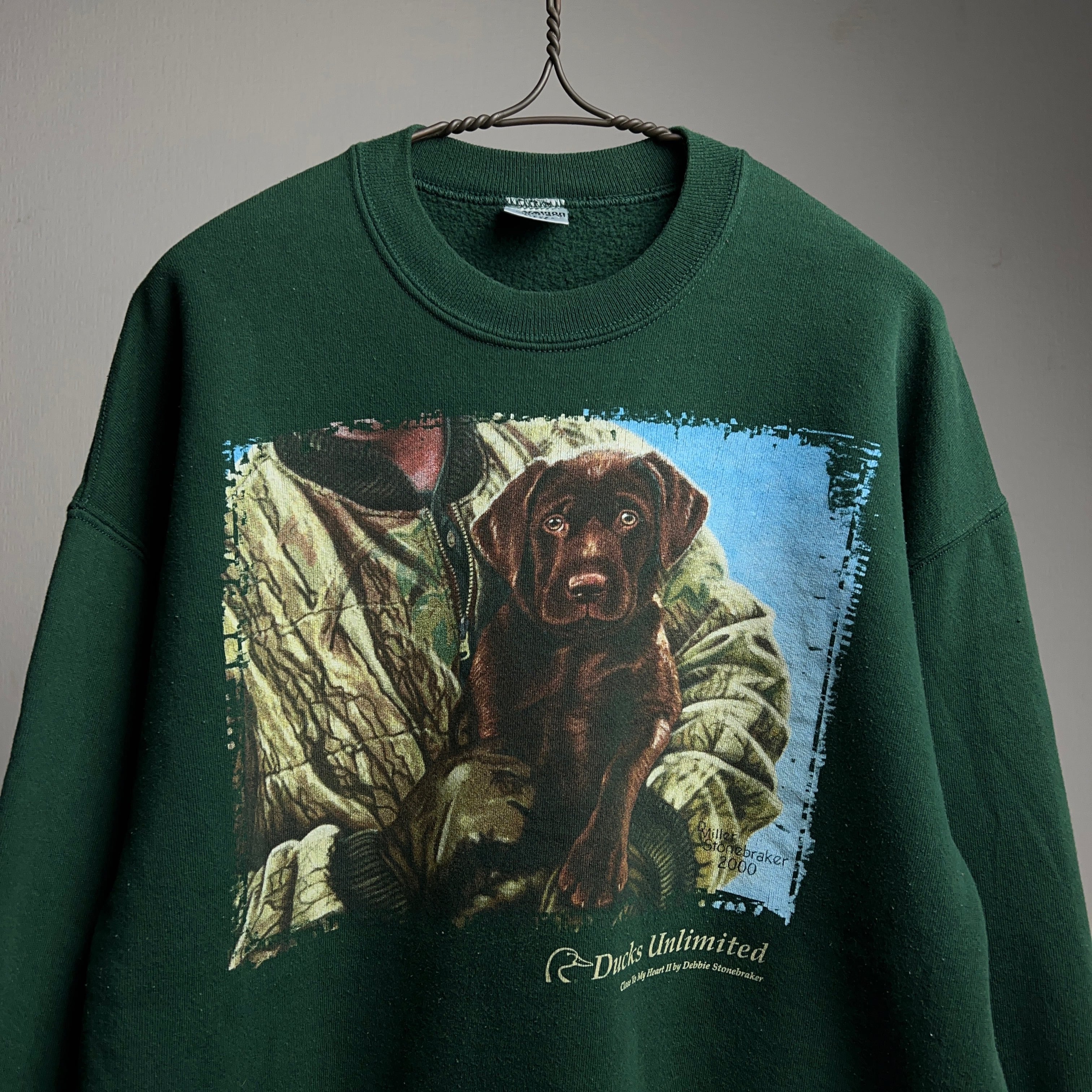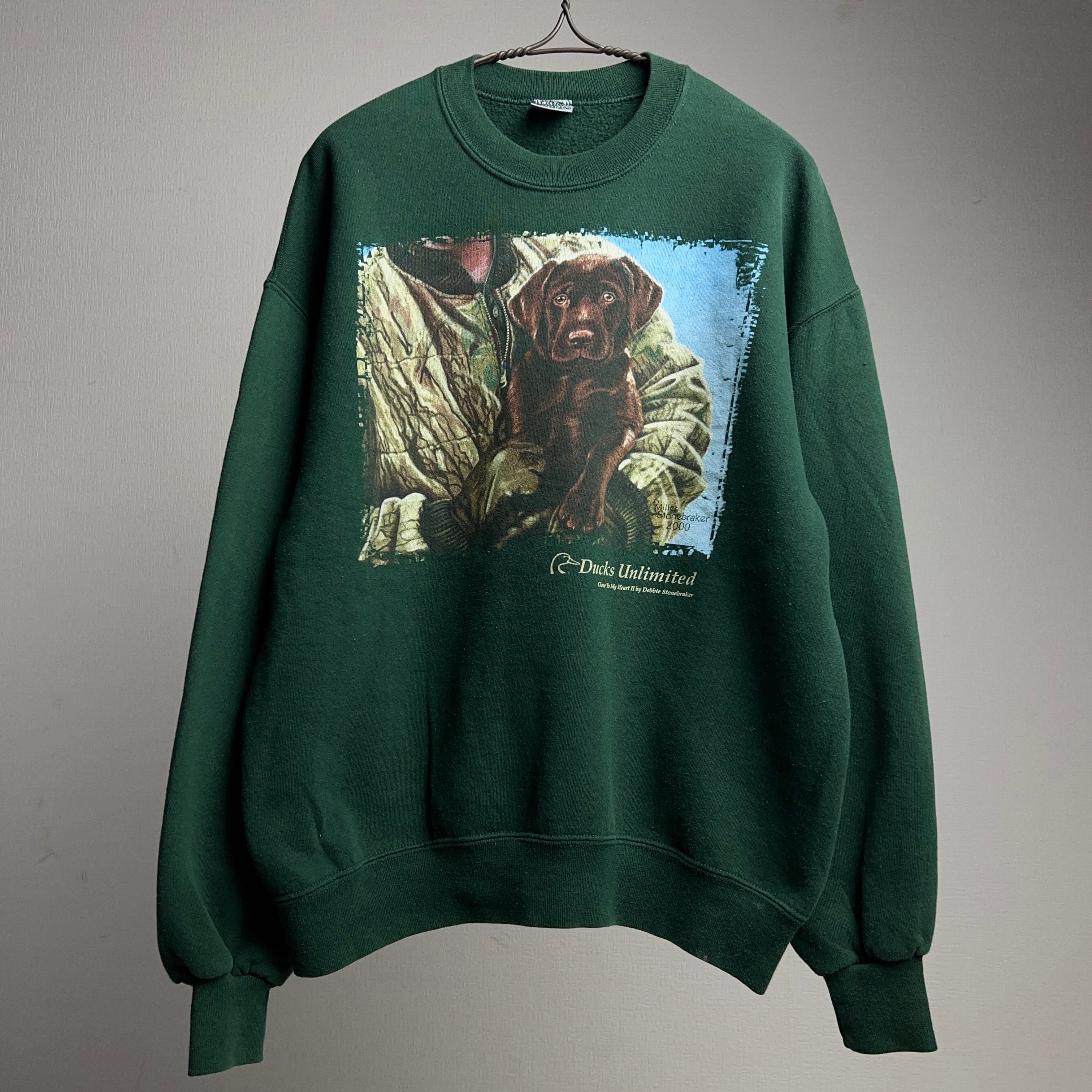 90's〜00's Ducks Unlimited ANIMAL PRINT SWEATSHIRT USA製 00年代 ダックスアンリミテッド 犬 プリント スウェット アート アニマル【0801A98】