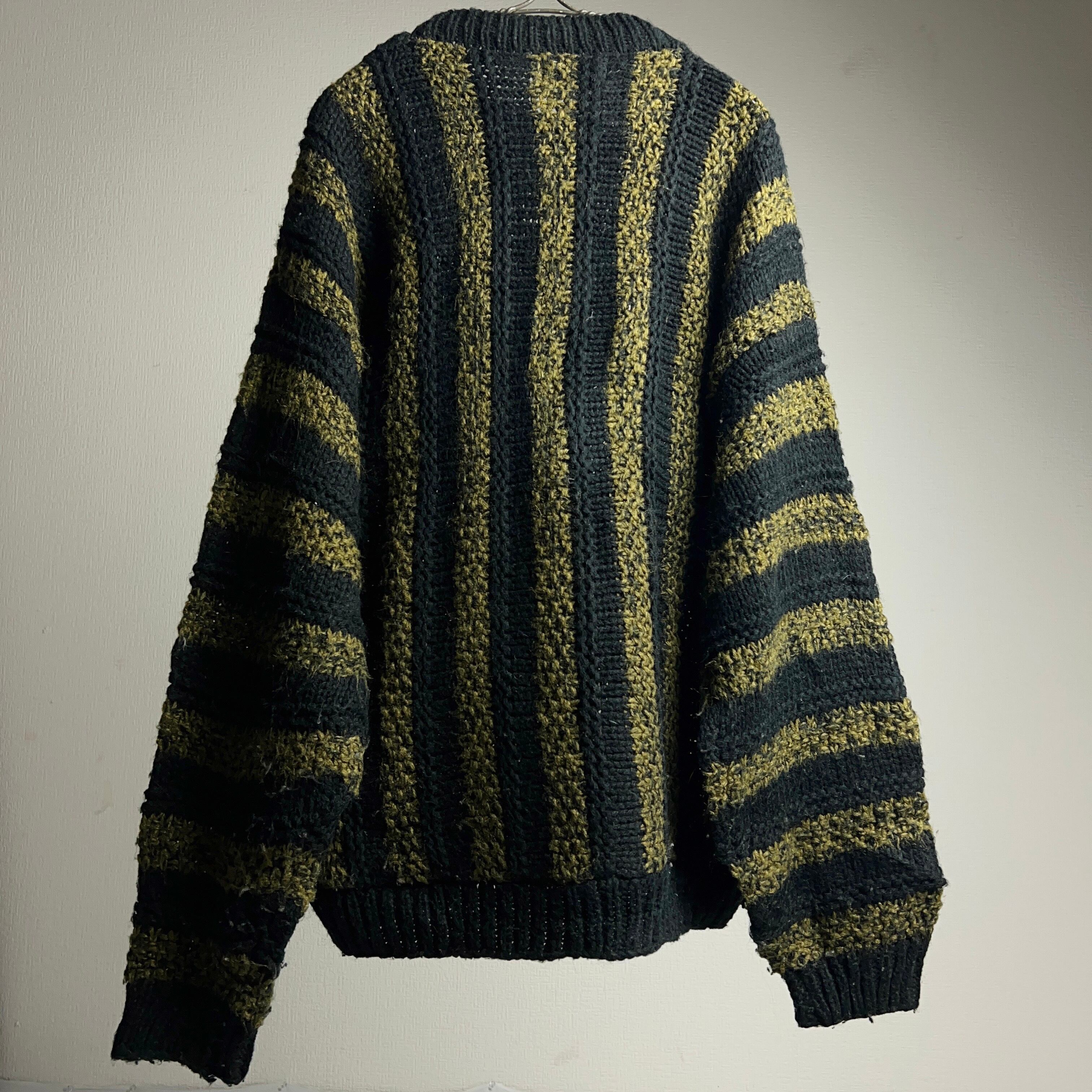 80's~90's Design Leather×Knit Sweater レザー×ニット セーター ストライプ 希少 80年代 龍 ドラゴン 【0801A157】【送料無料】
