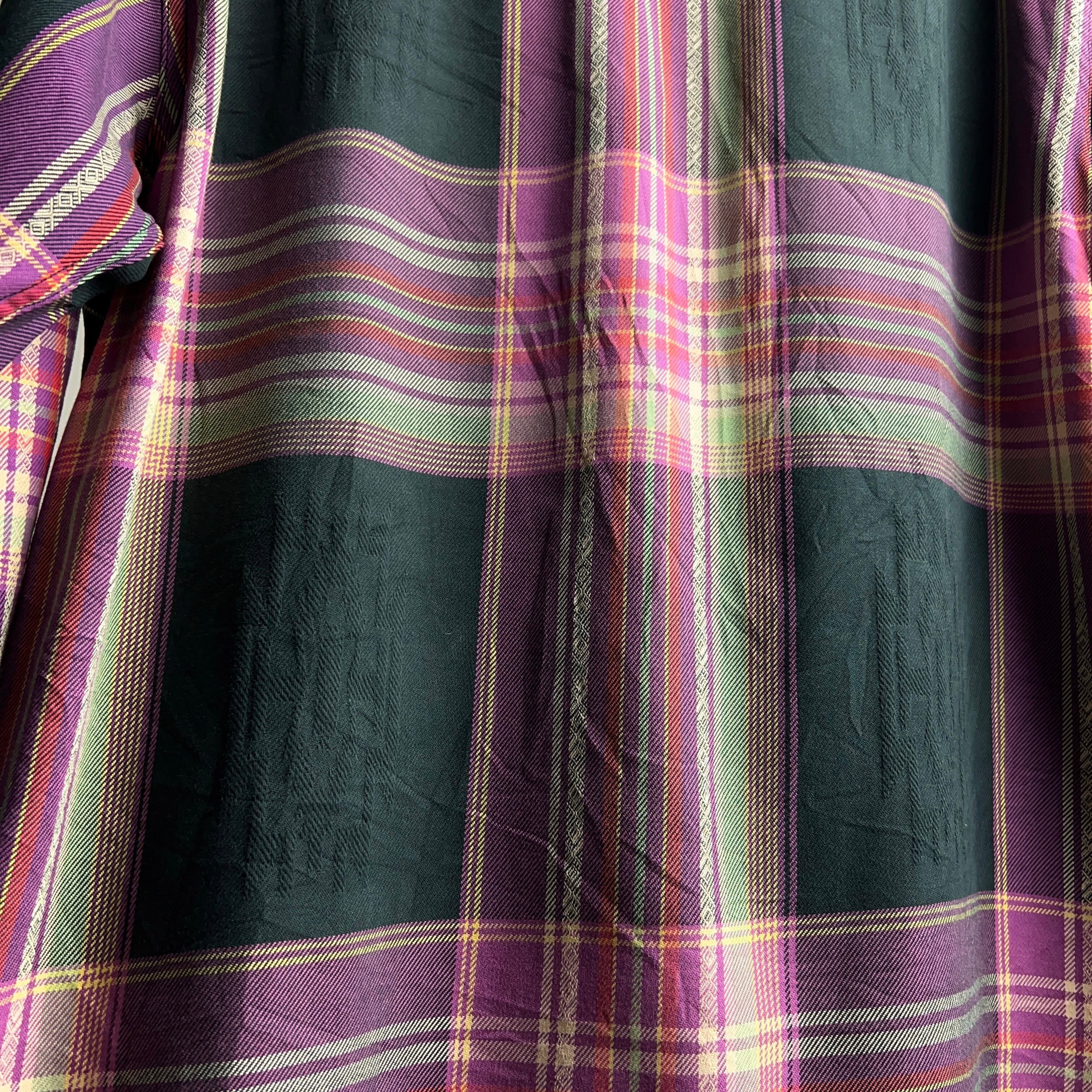 あまり見かけない黒ベースで大判のチェック柄がとてもかっこいい一着。黒部分にはネイティブ柄も入っています。