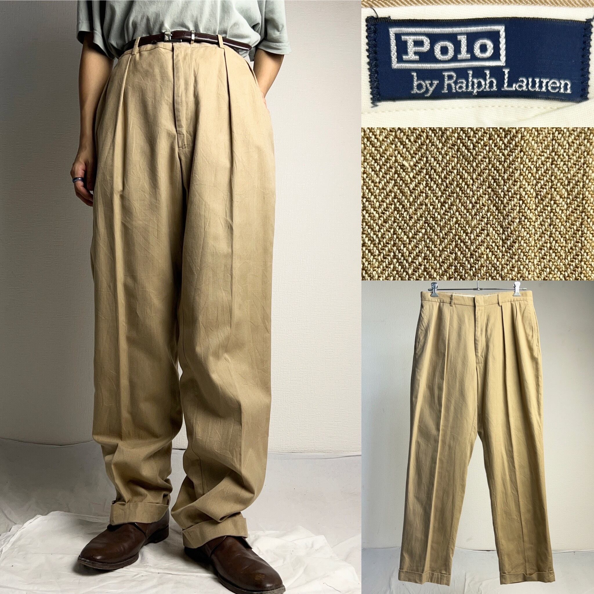 "Polo Ralph Lauren" HBT 2Tuck Cotton Slacks W35 ポロラルフローレン 2タック スラックス ベージュ ヘリンボーン【0801A164】