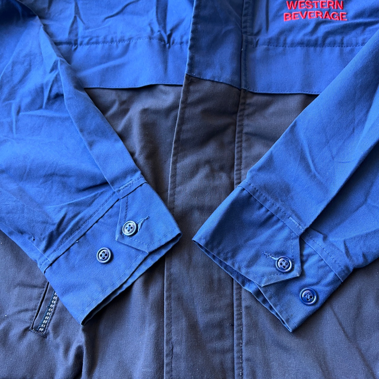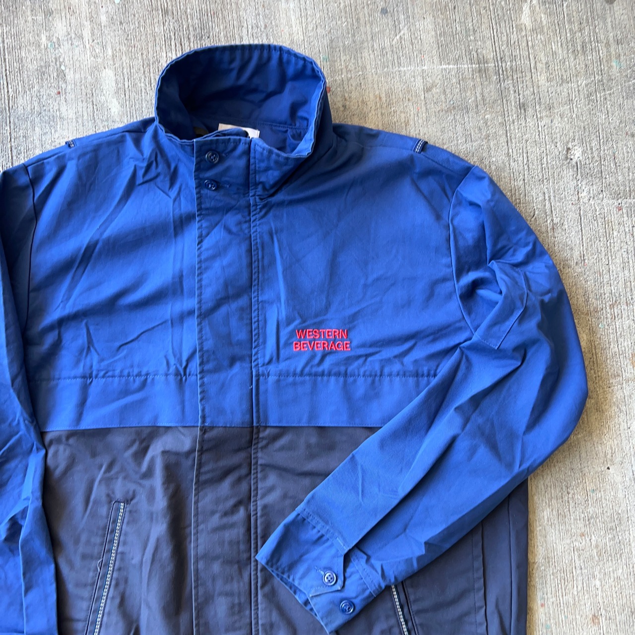 ツートンカラーボディに赤文字の刺繍が映えた一着。