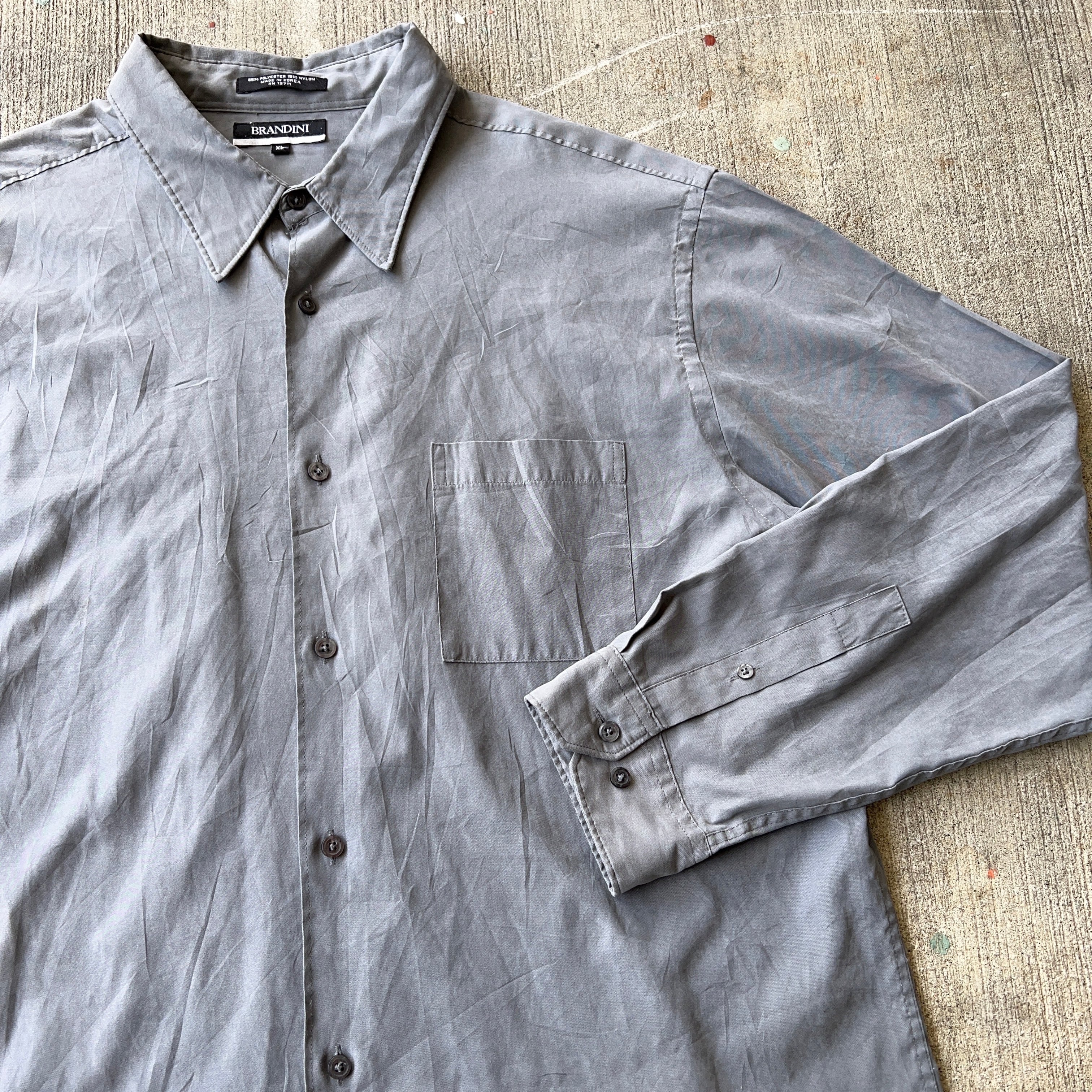 "BRANDINI" FAKE SUEDE L/S SHIRT フェイクスエードシャツ グレー ベロア 【3000円均一商品】【TH0028】