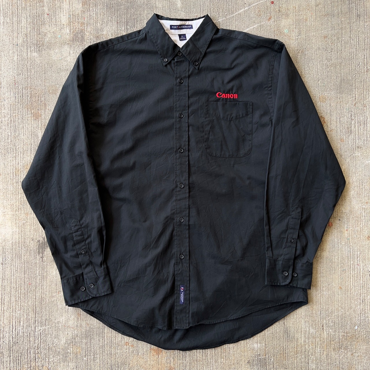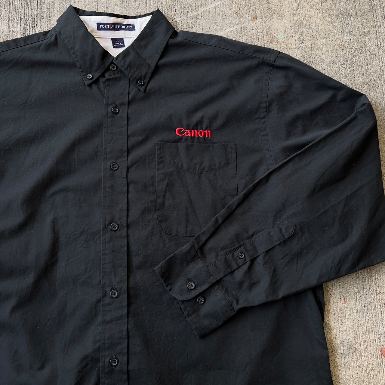 "Canon" L/S SHIRT BLACK SIZE XL キャノン 企業ワークシャツ 刺繍 ブラック【3000円均一商品】【TH0032】