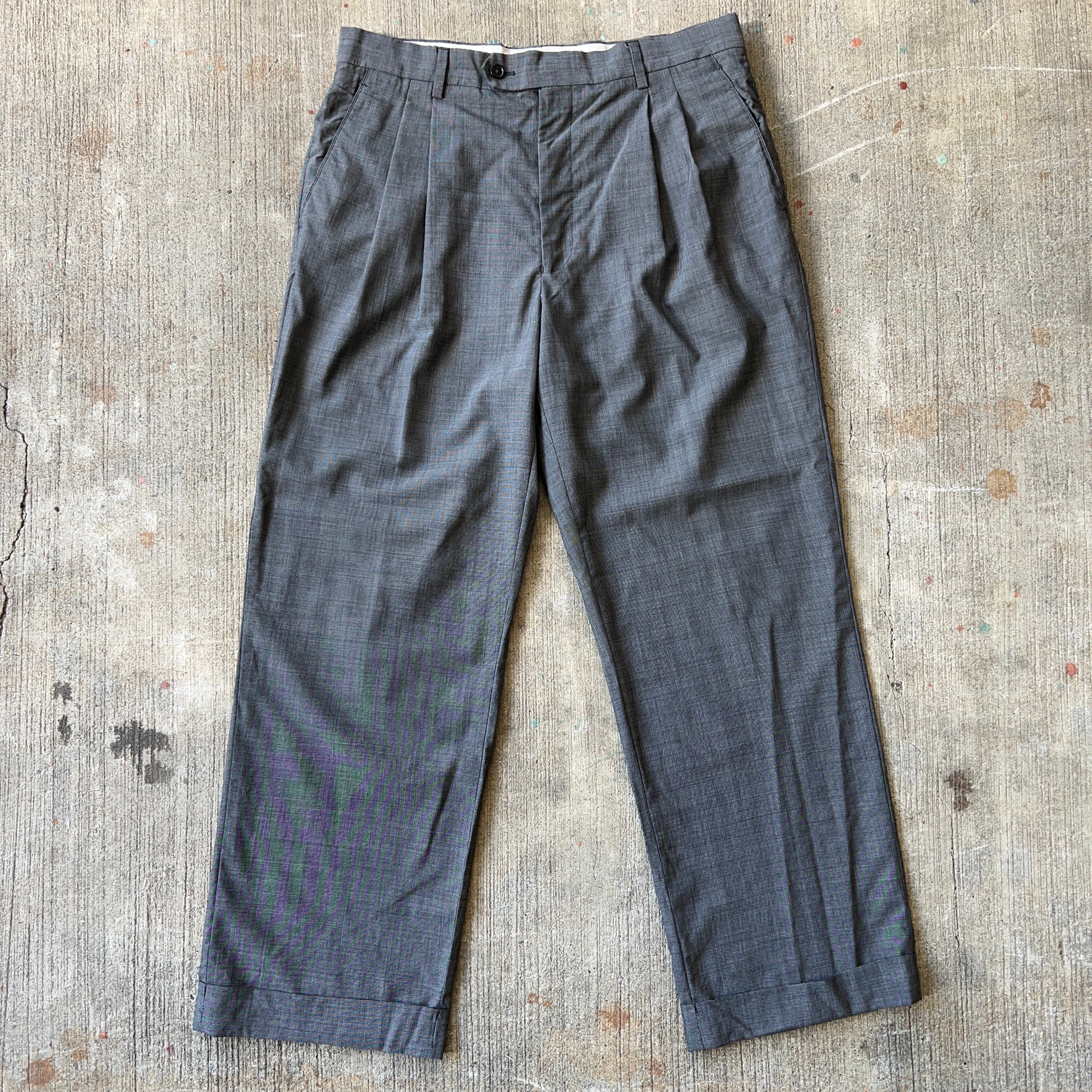 ダークグレーの 2タックワイドスラックス。