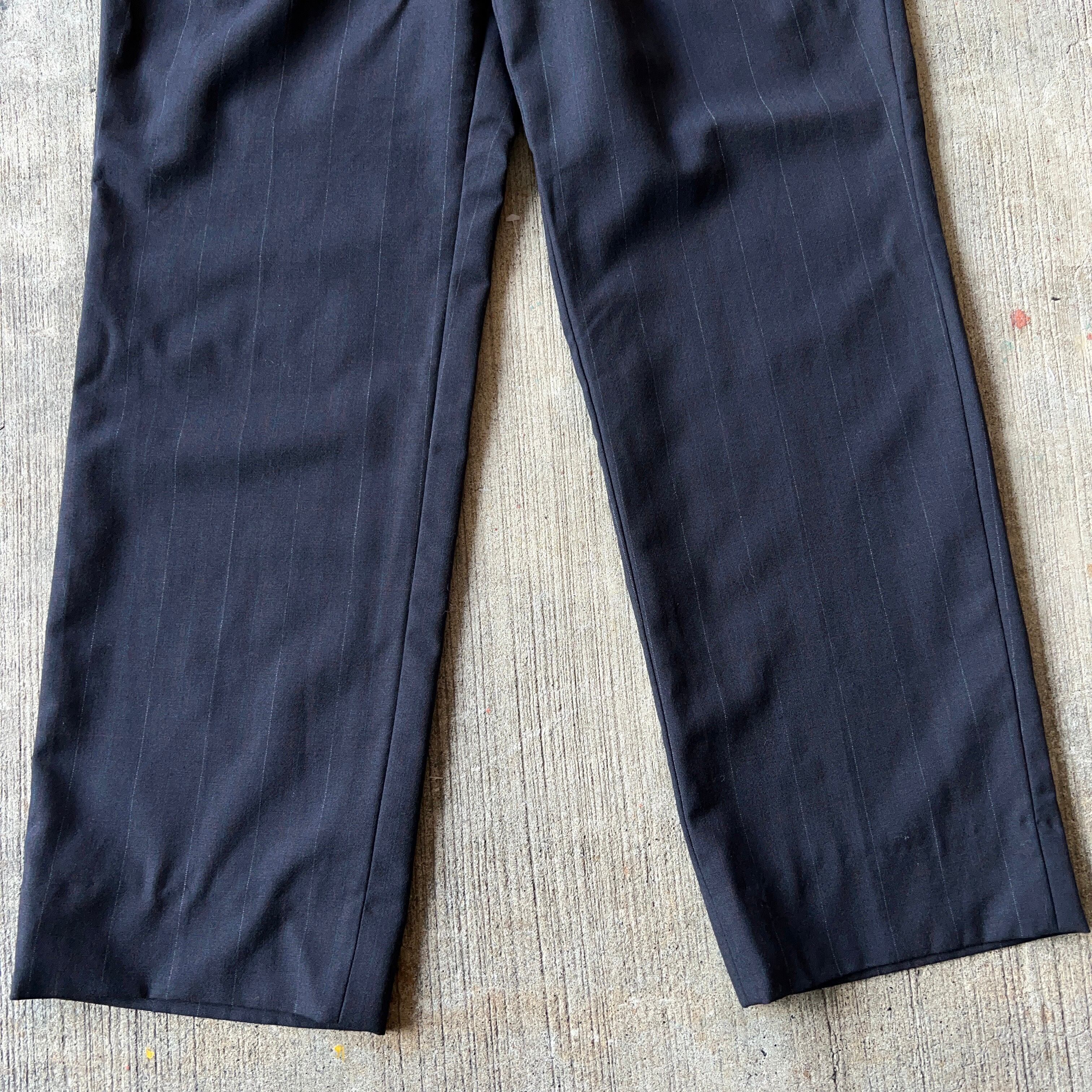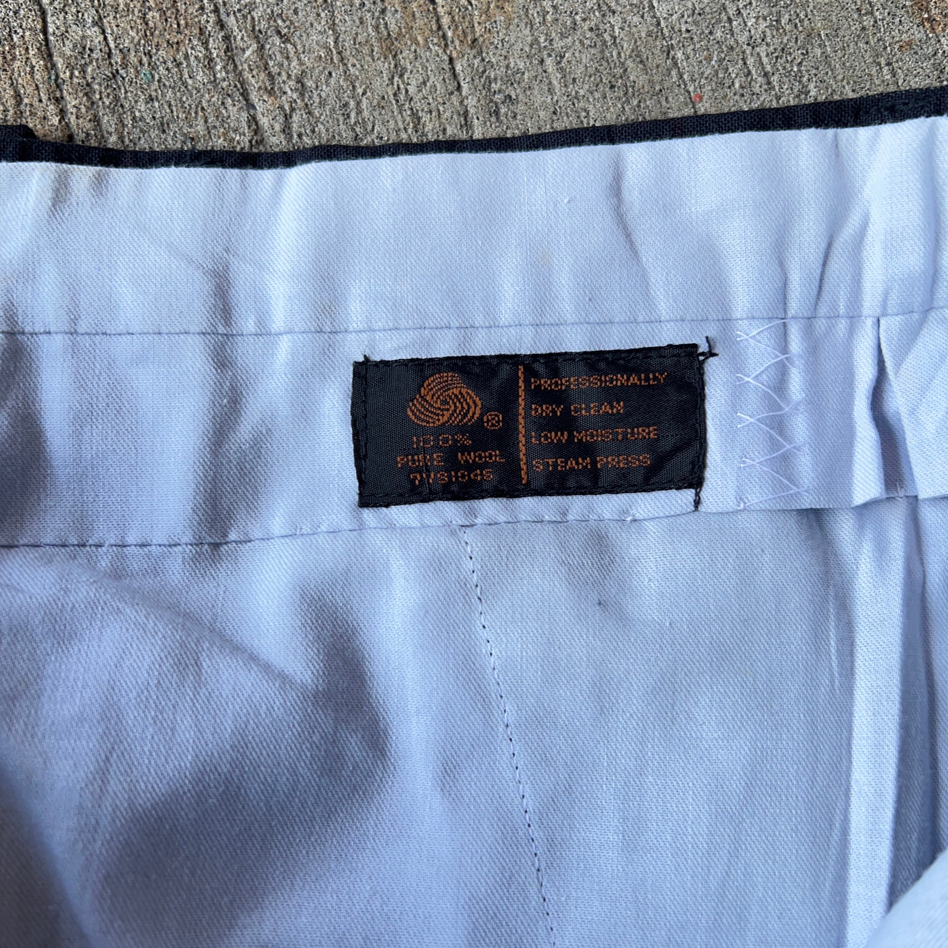 80's~90's 2TUCK WOOL SLACKS NAVY W35 2タック チェック スラックス ネイビー【3000円均一商品】【2点以上の購入で1000円OFF】【TH0082】