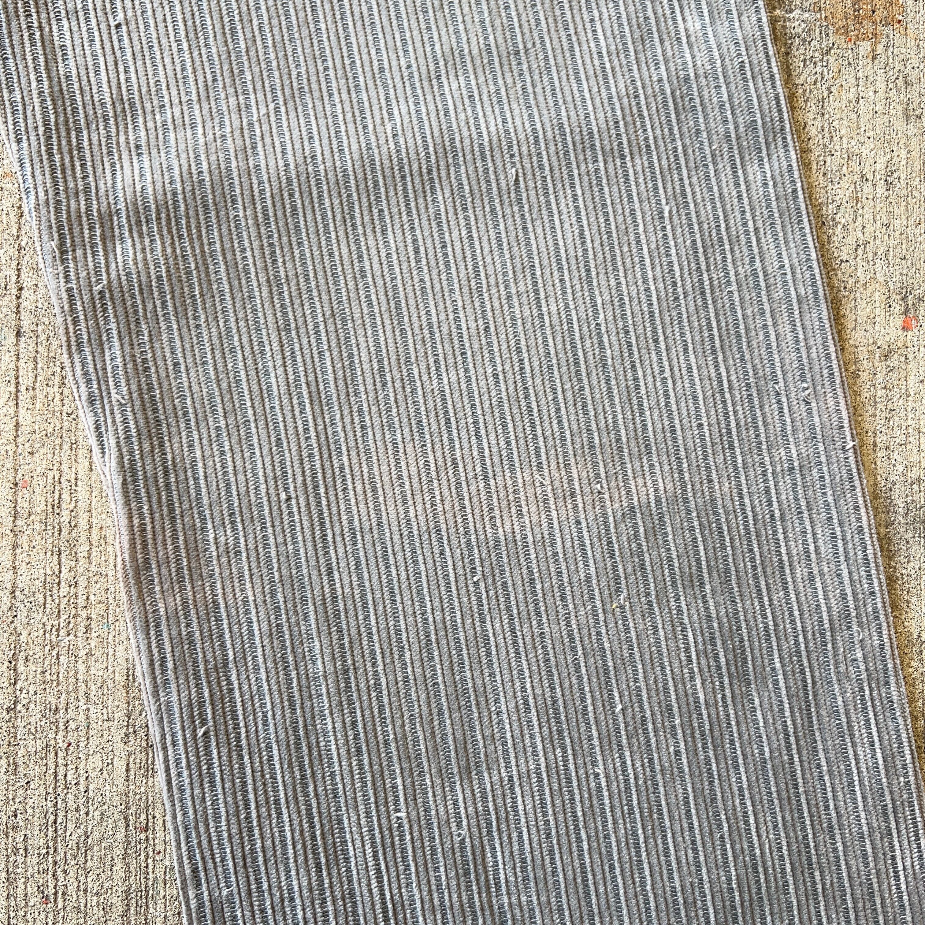 変わった織り方の生地が使われたコーデュロイパンツ。色ムラのあるグレー系のカラーで落ち着いた印象。