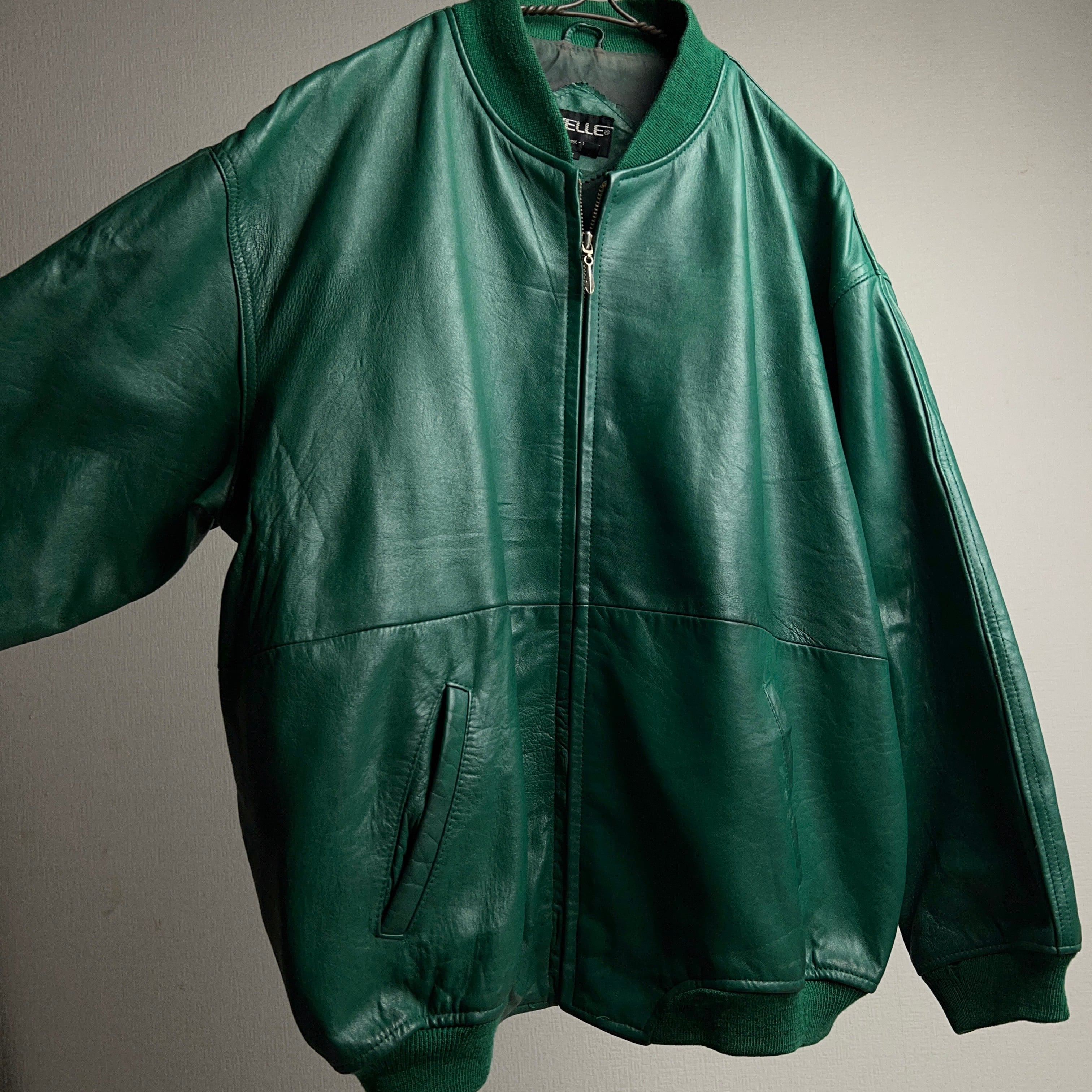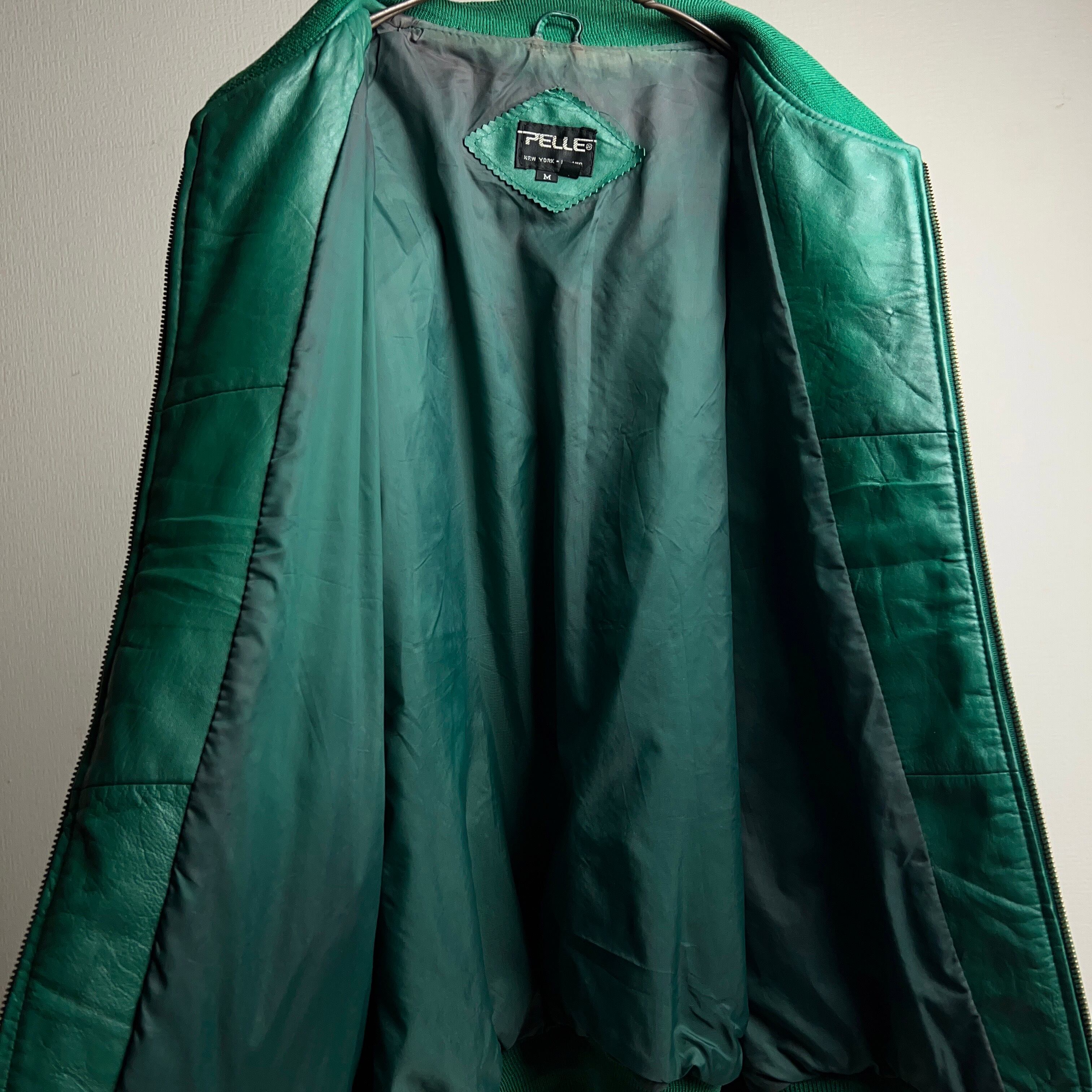 “PELLE” LEATHER BLOUSON SIZE M ペレ レザージャケット グリーン ブルゾン トラックジャケット【0908A37】