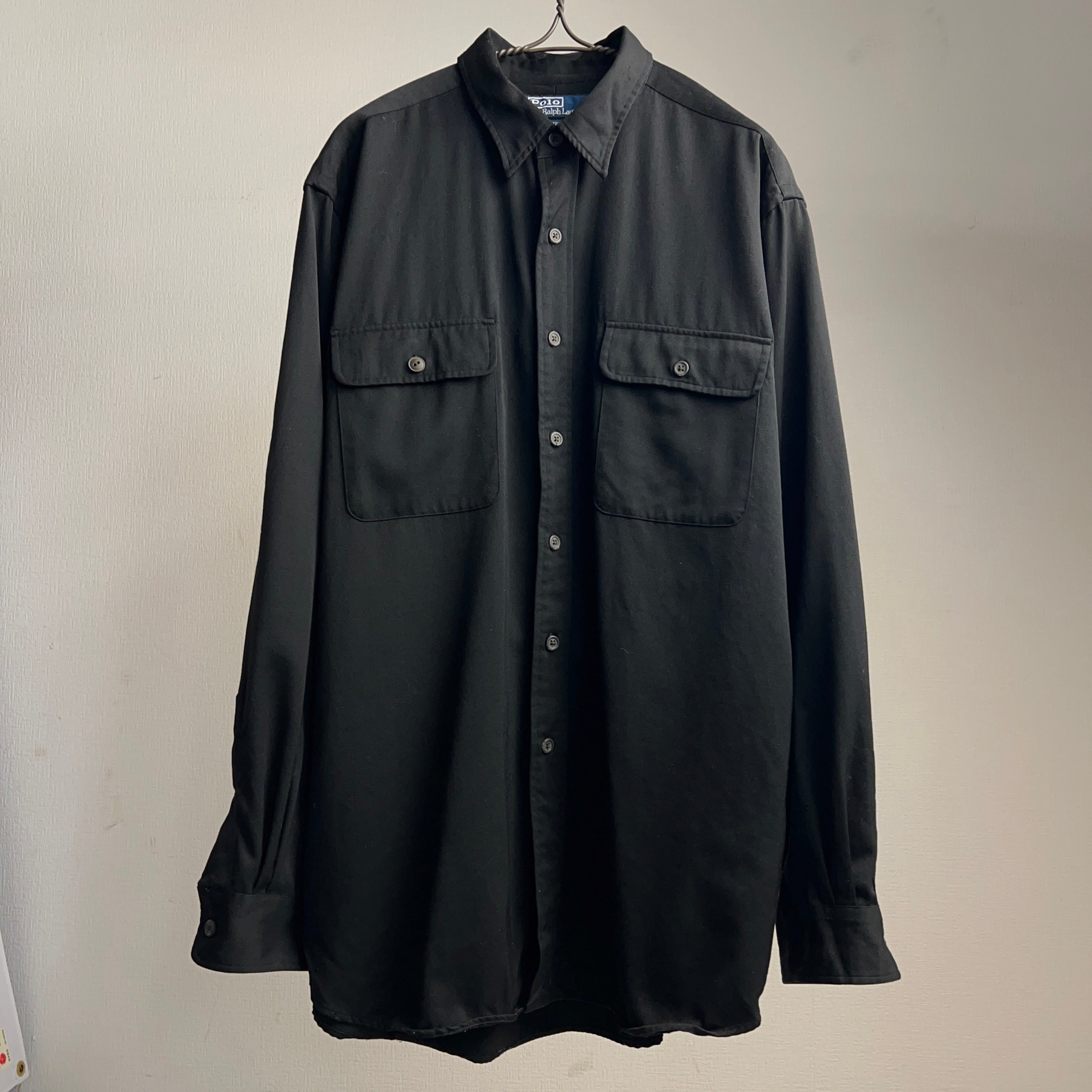90's~ Ralph Lauren "WHITFIELD" Wool Gabardine Shirt Black ラルフローレン ウールギャバジン シャツ ブラック ギャバシャツ SIZE L【0908A61】【送料無料】